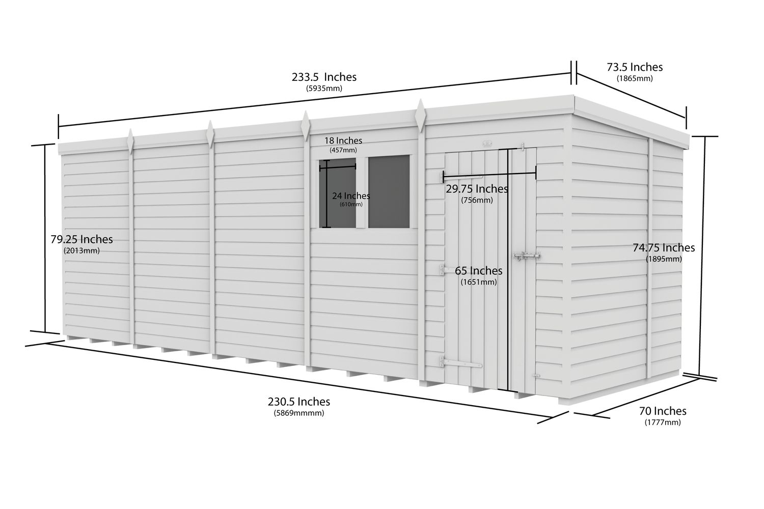 - Single sloping roof for efficient water drainage