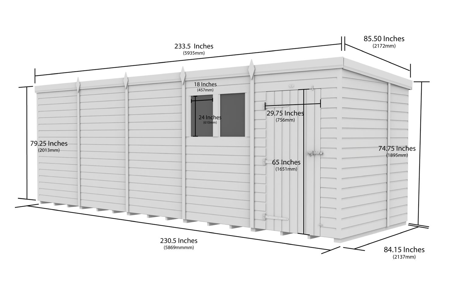 20 X 7 Security Pent Shed Double Door | Garden Shed | Tanalised Timber | 20ft x 7ft