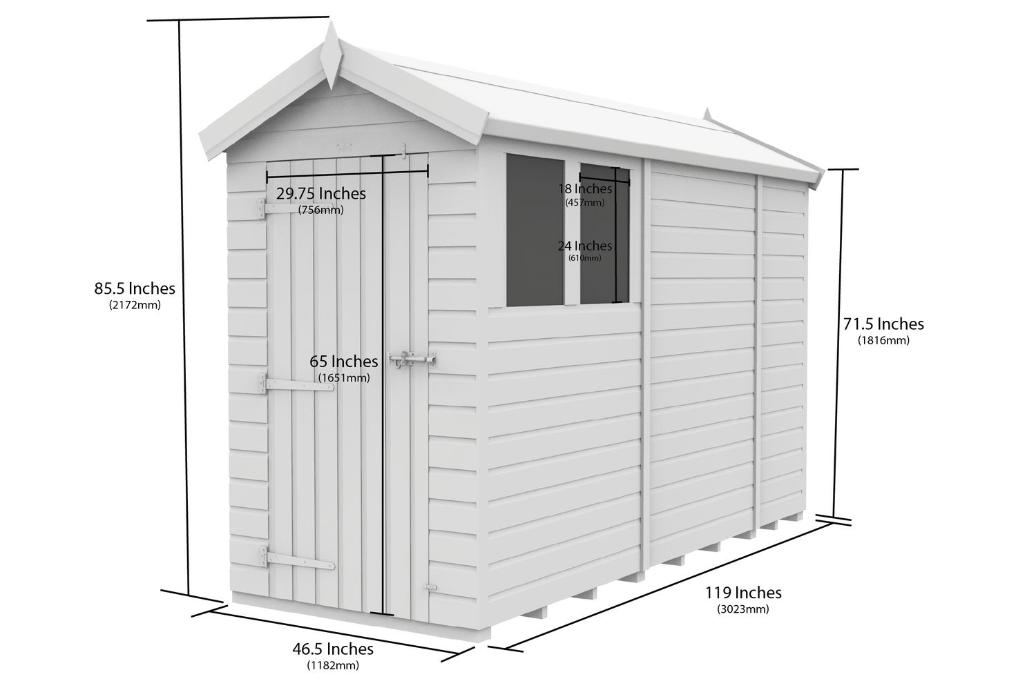 - 4ft x 10ft apex roof shed with double doors for easy access