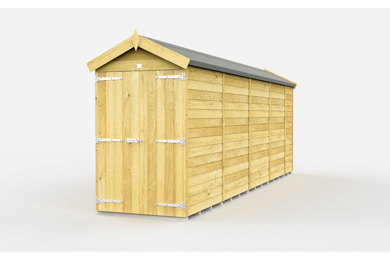 - 4ft x 19ft apex double door timber shed