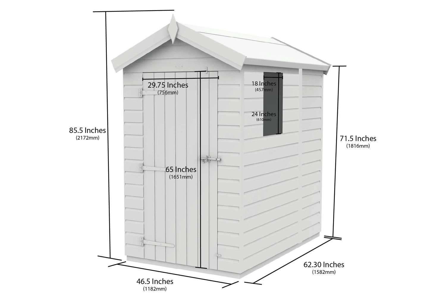 The heavy-duty 18mm floor is designed to support heavier items, with floor bearers that elevate the shed off the ground for superior moisture protection. Whether you are storing lawnmowers, bikes, or garden furniture, you can trust this shed to keep everything safe and dry. The apex roof design not only provides maximum headroom in the centre—ideal for taller storage—but also ensures efficient water drainage, preventing leaks and dampness.