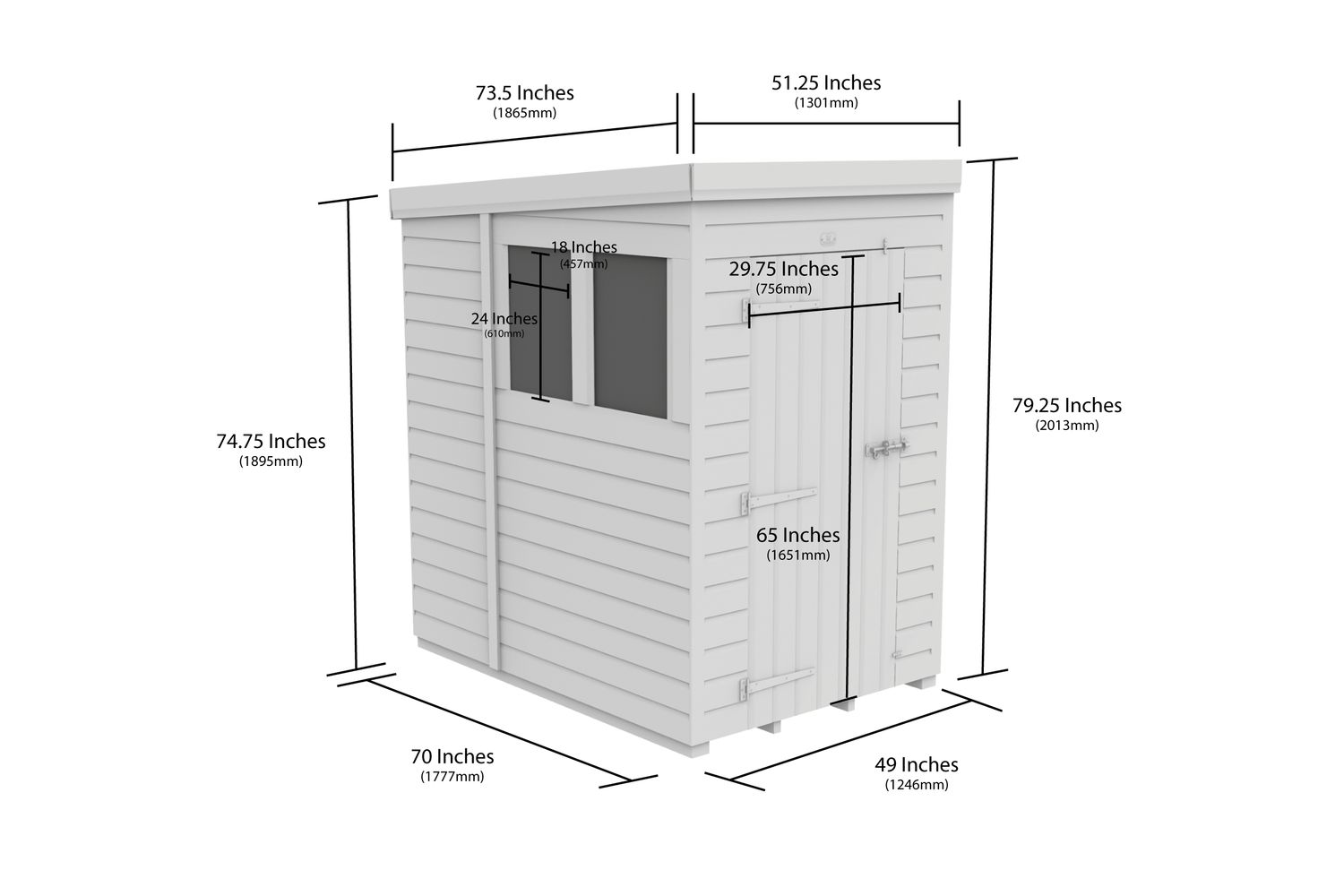 - Roof: Single sloping pent design
