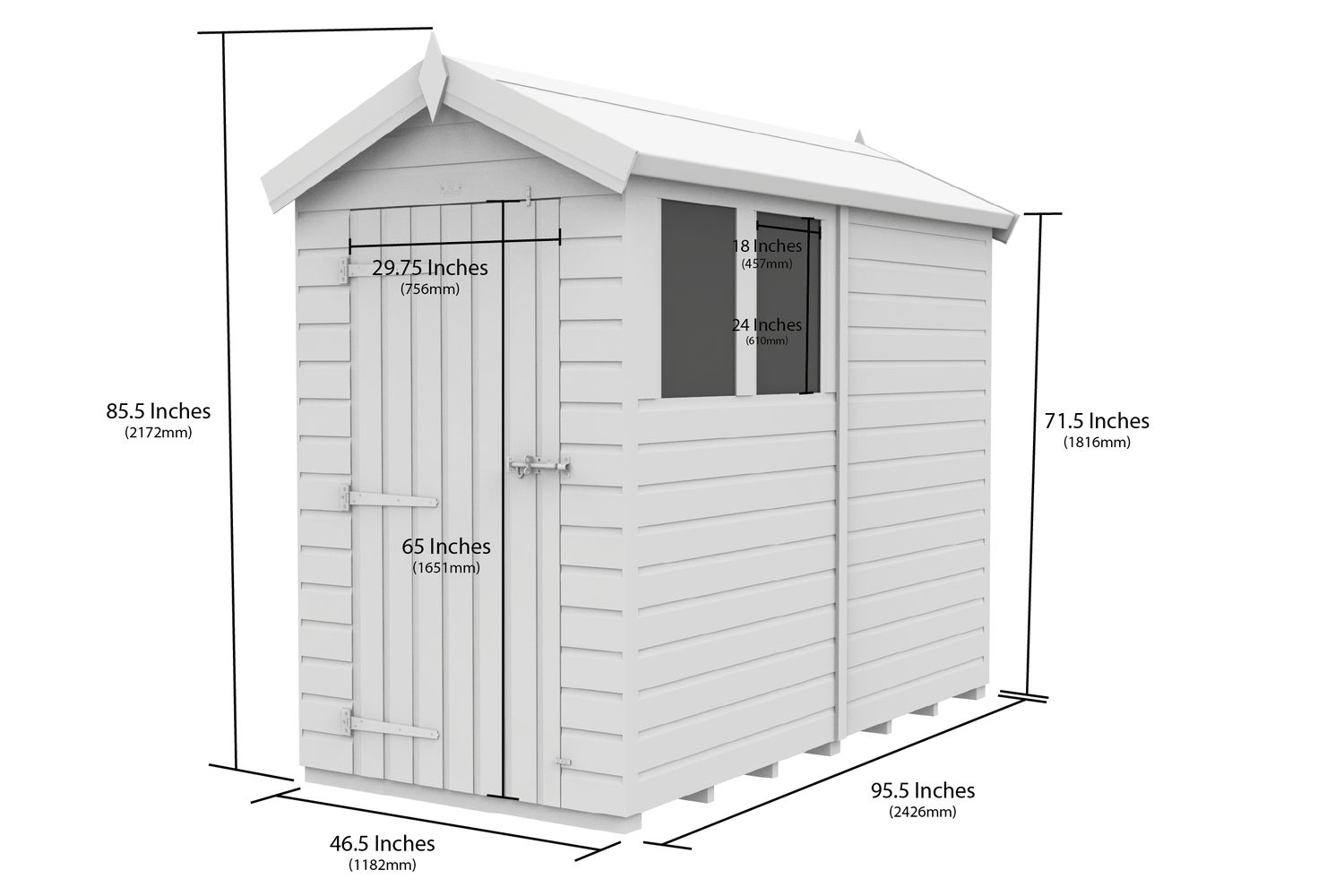 - 4ft x 8ft apex roof shed for maximum headroom and water drainage