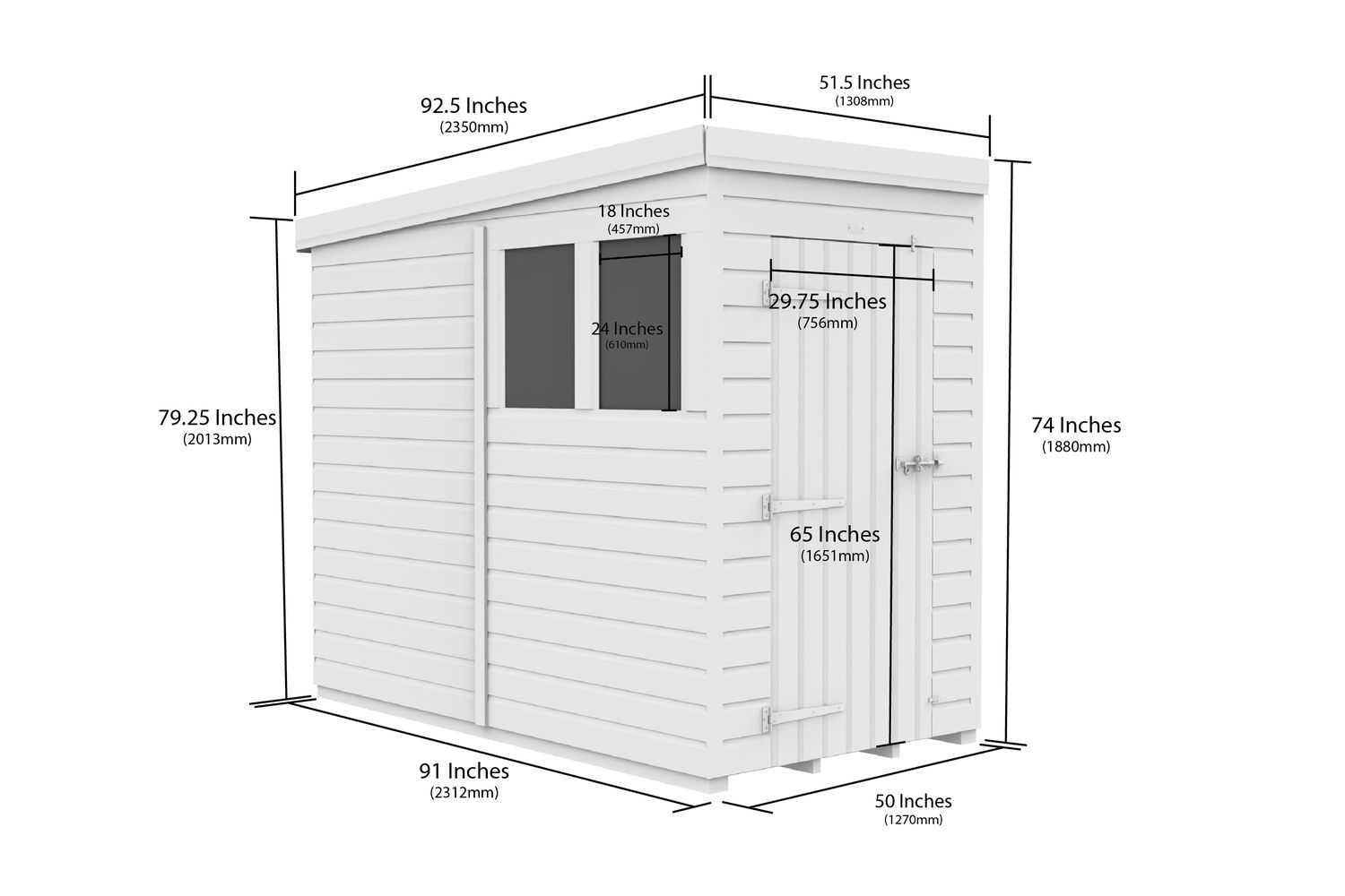Enjoy peace of mind knowing your shed is built to withstand the harshest Irish weather. The single sloping pent roof design not only adds a contemporary touch but also ensures efficient water drainage, preventing leaks and water damage. The higher front provides extra headroom at the entrance, making access easy and comfortable. Choose from single door options and various window placements to maximise natural light and suit your garden layout.