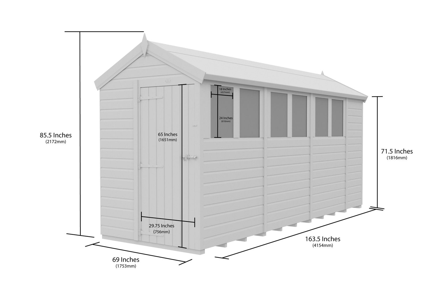- 5ft x 14ft apex roof shed for spacious storage