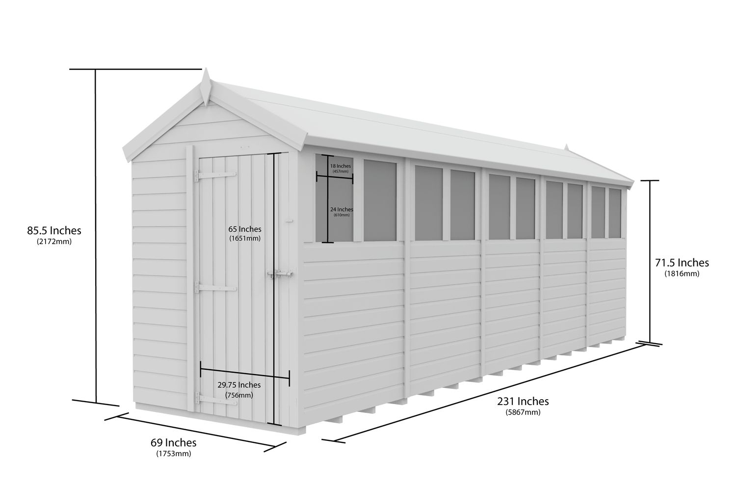 - Spacious 5ft x 20ft apex shed – ideal for large gardens and versatile storage