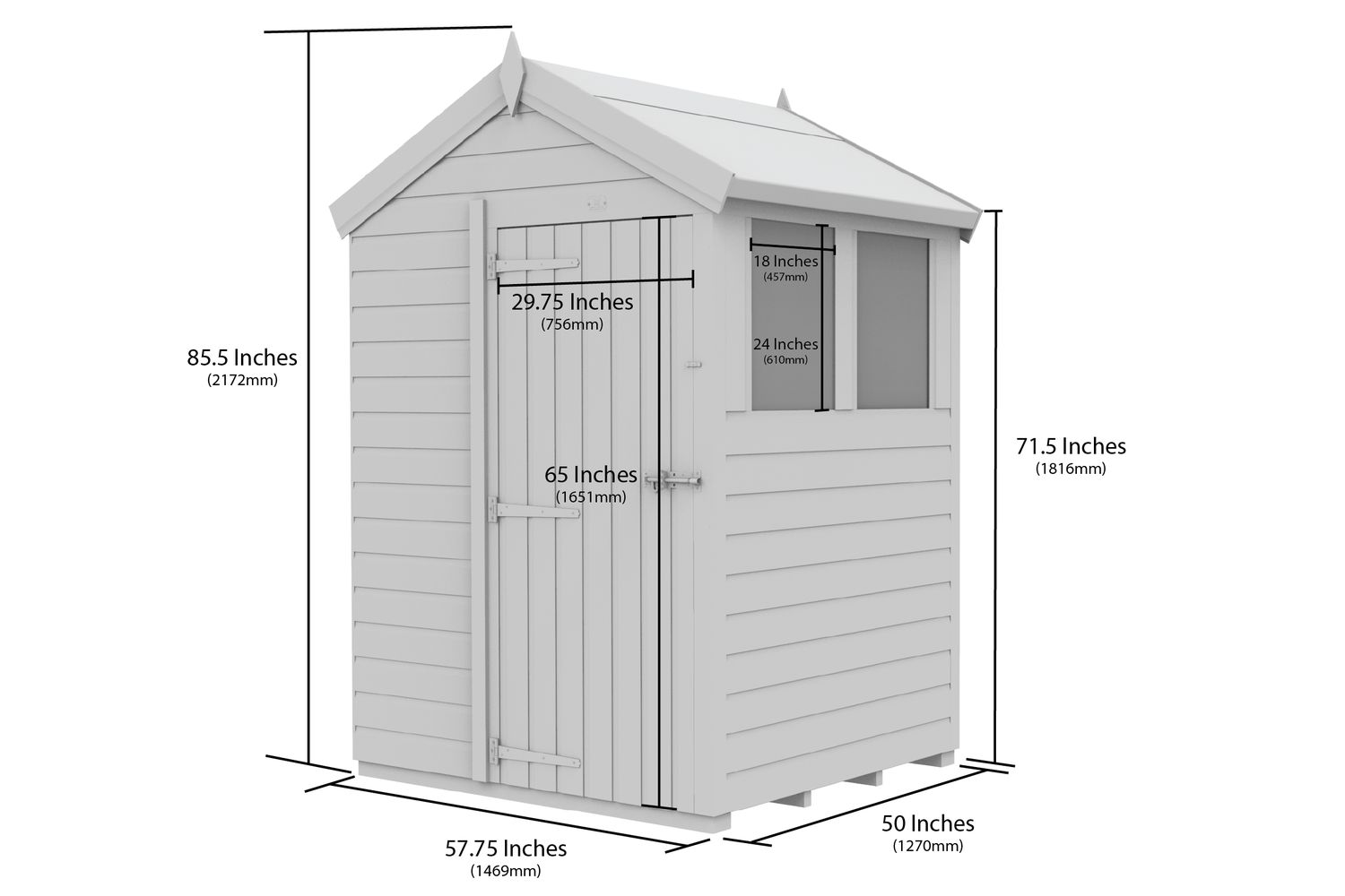 The apex roof design not only provides maximum headroom in the centre—ideal for storing taller items—but also ensures efficient water drainage, keeping your belongings protected from the elements. The heavy-duty 18mm floor, supported by sturdy floor bearers, allows you to store heavier items with confidence, while elevating the shed off the ground to prevent moisture build-up and prolong the life of your investment.