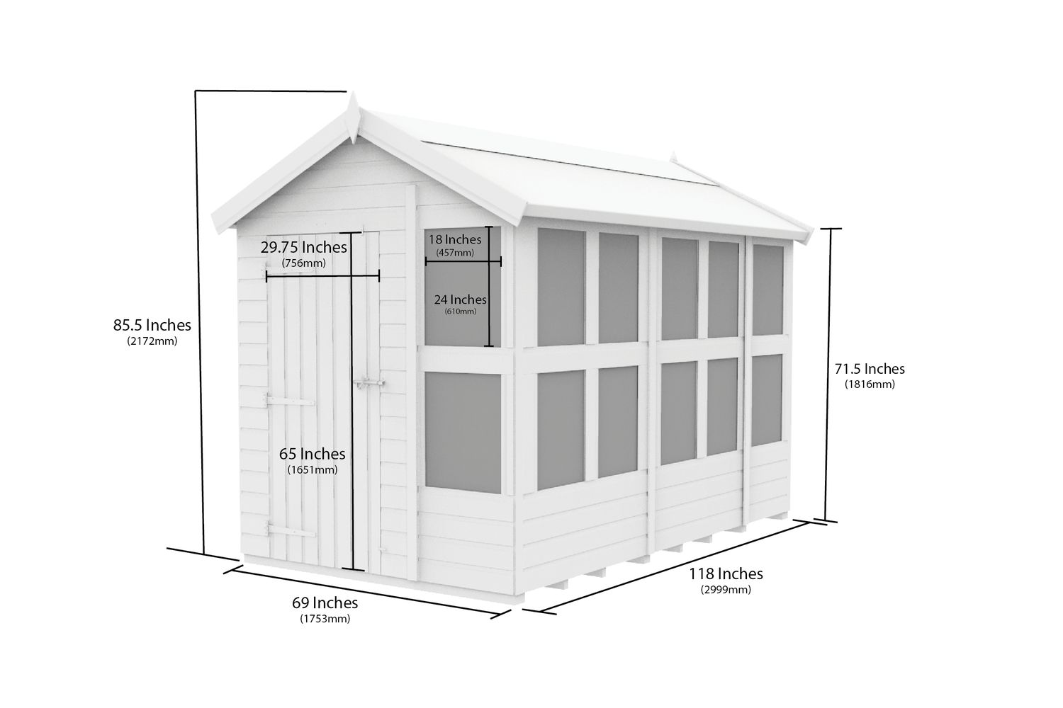 - Apex roof design for maximum headroom and efficient water drainage