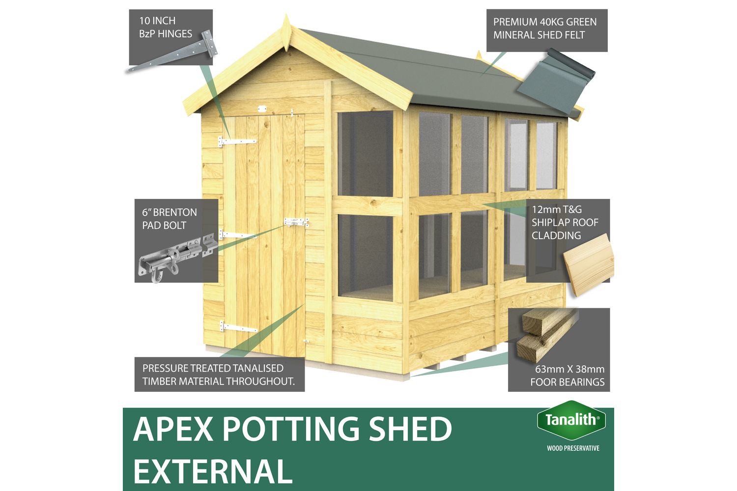 - 6 x 10 Apex Potting Shed panels and framework