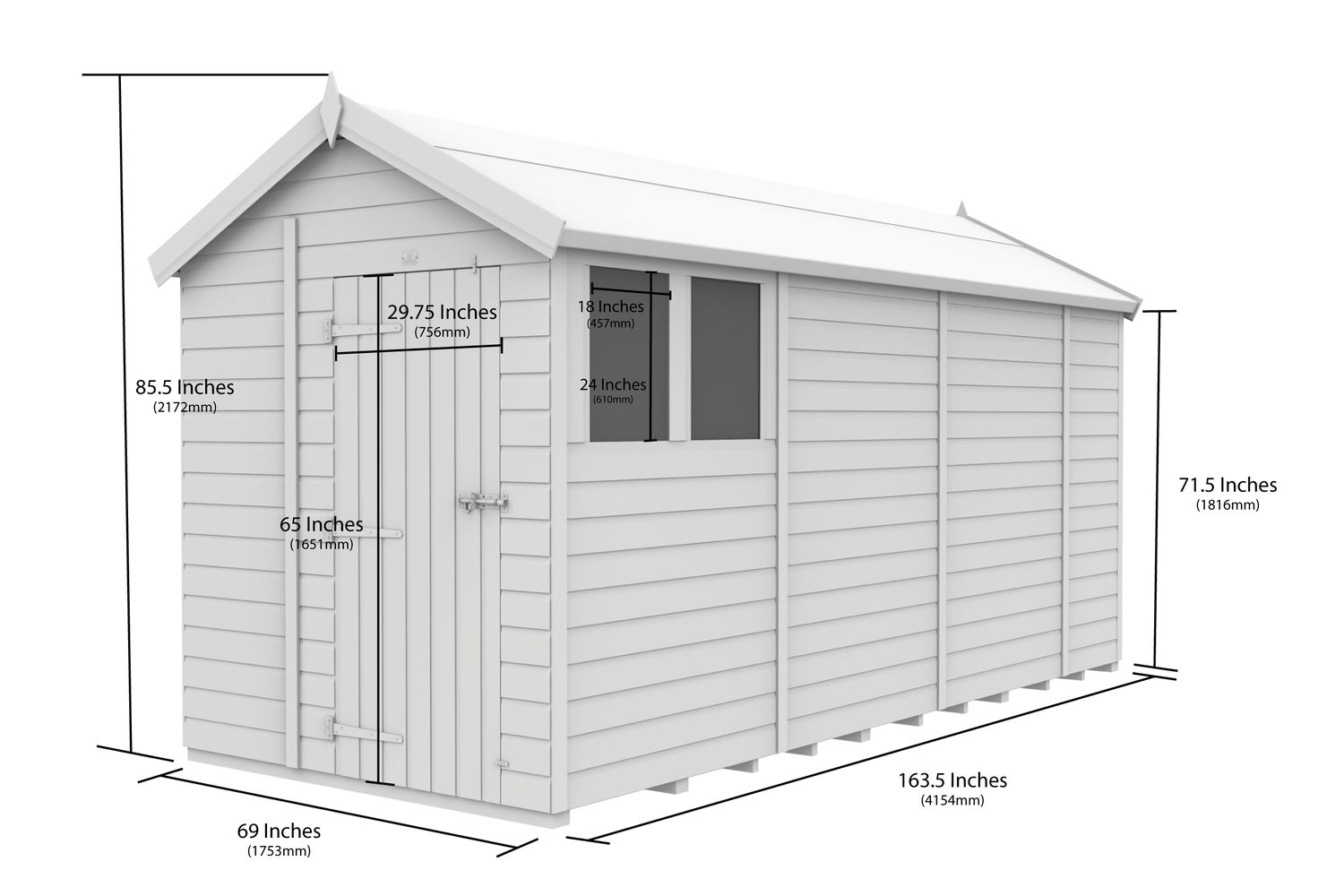 - Roof: Apex design for maximum headroom and water drainage