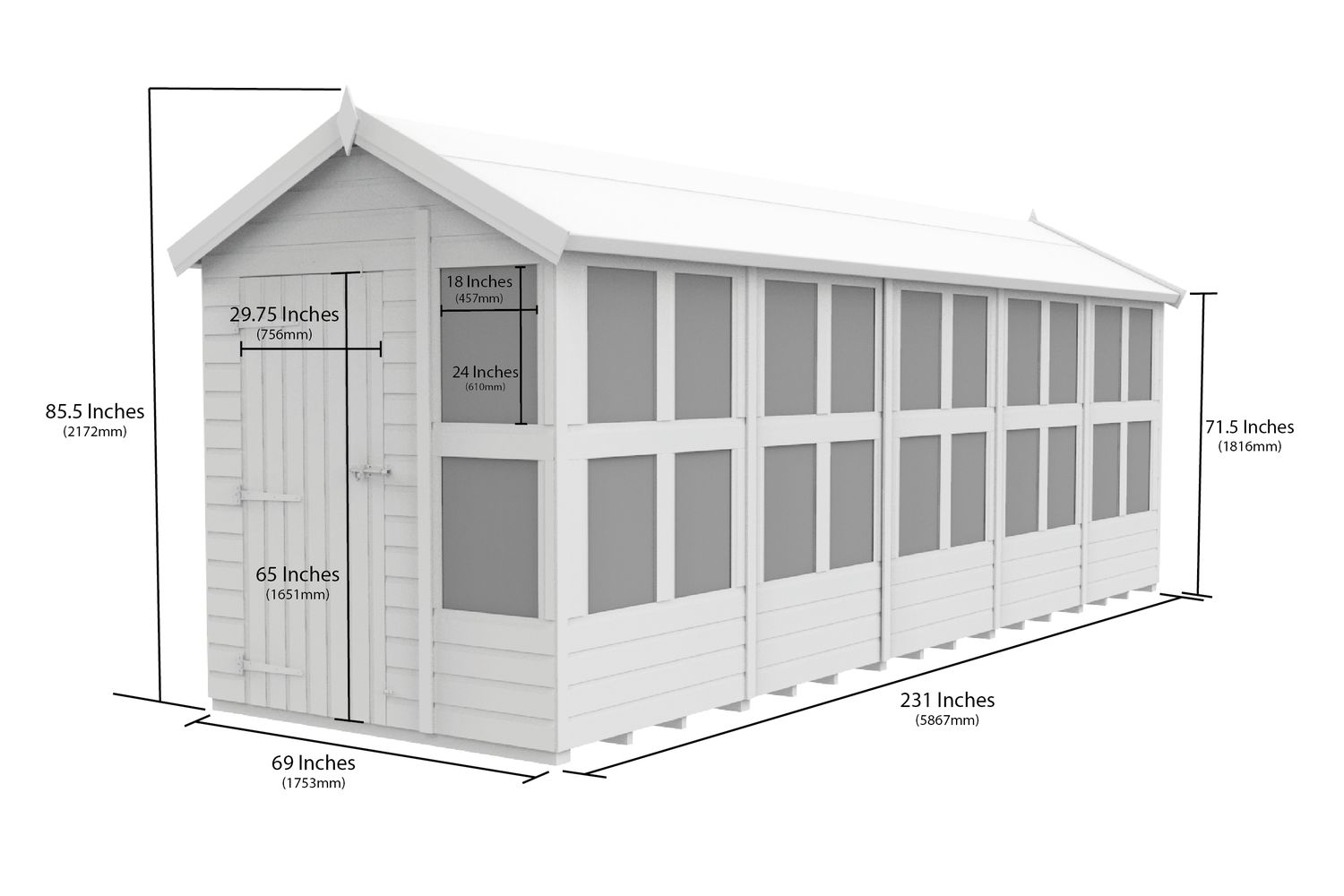 - Apex roof for increased headroom and efficient water drainage