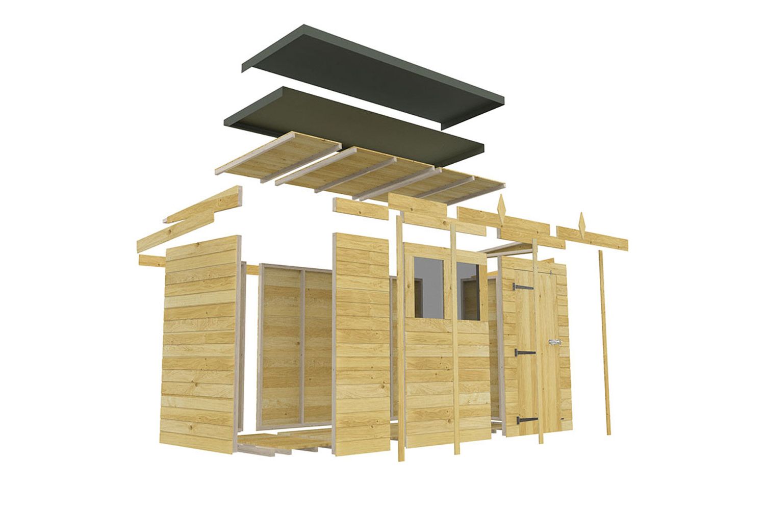Constructed from premium 12mm Swedish pressure treated tanalised red-wood tongue and groove shiplap, this shed stands up to the harshest Irish rain and wind. The pressure treated timber not only resists rot, fungal growth, and insect attack, but also ensures your shed remains strong and attractive for years to come. The modern pent roof design features a higher front, providing extra headroom at the entrance and a sleek, contemporary look that fits neatly against walls or fences—ideal for smaller gardens or tight spaces.