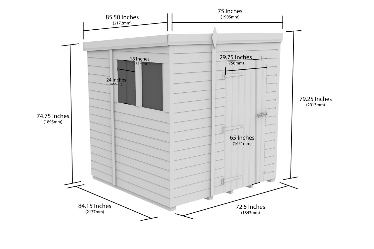 - Roof: Single sloping pent design for water drainage