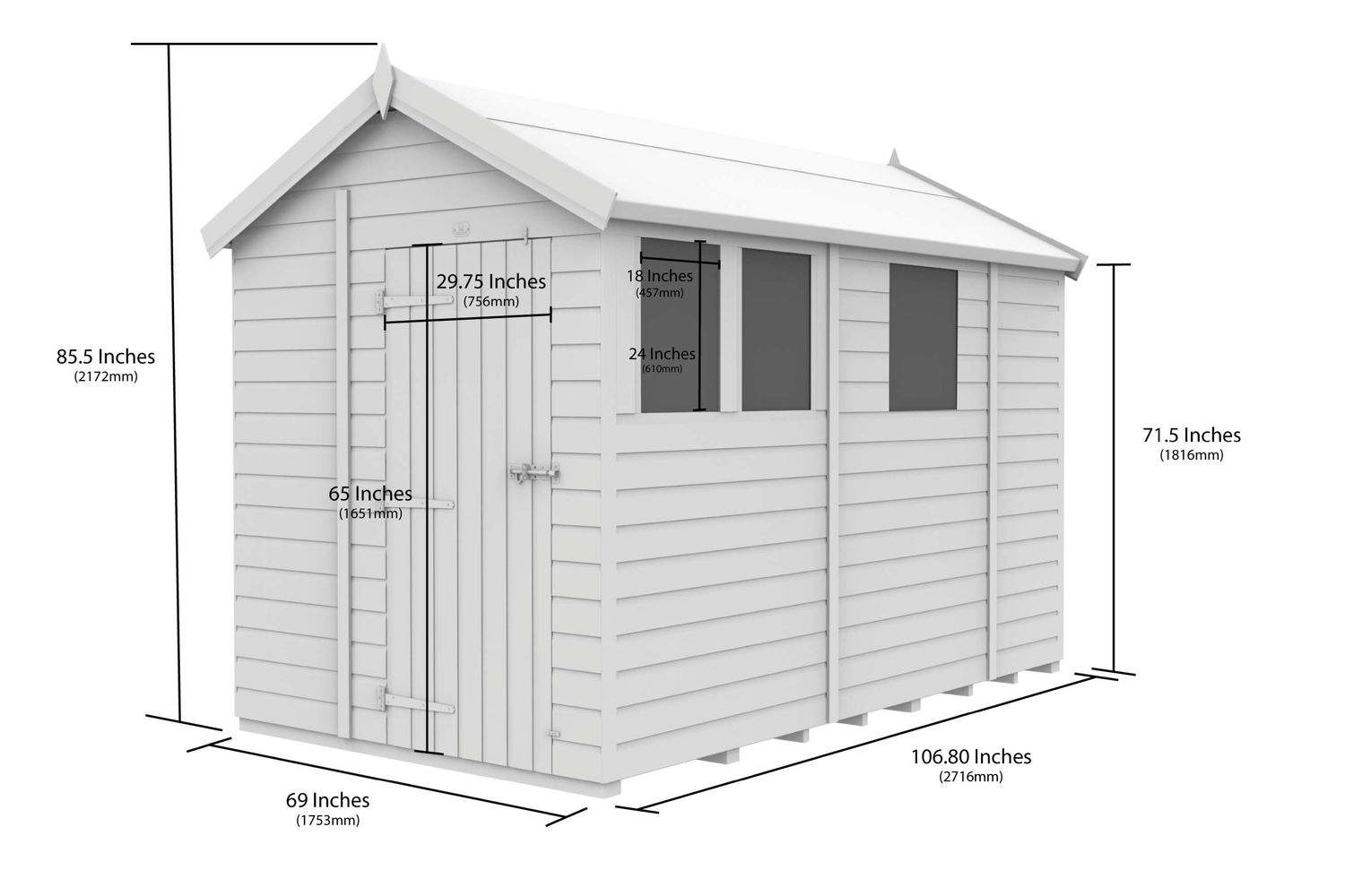 - Roof: Apex design for extra headroom and drainage