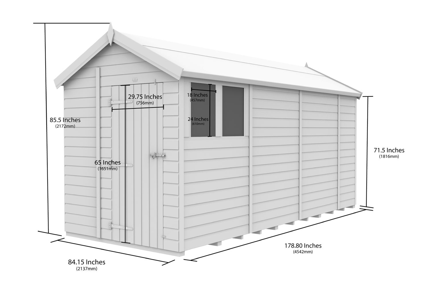 Constructed from premium 12mm Swedish redwood tongue and groove shiplap, this shed is pressure treated and tanalised for maximum protection against rot, fungal decay, and insect attack. The heavy-duty 18mm floor, supported by sturdy bearers, ensures your valuables are elevated off the ground, safeguarding them from moisture and damp. The fully framed and screwed-together structure delivers exceptional stability, while the apex roof design not only maximises headroom but also improves water drainage, keeping the interior dry and comfortable.