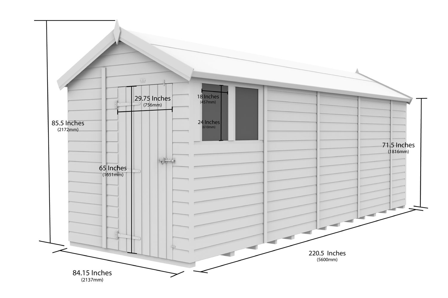 - Large 7 x 19 ft apex roof design for maximum headroom and storage capacity