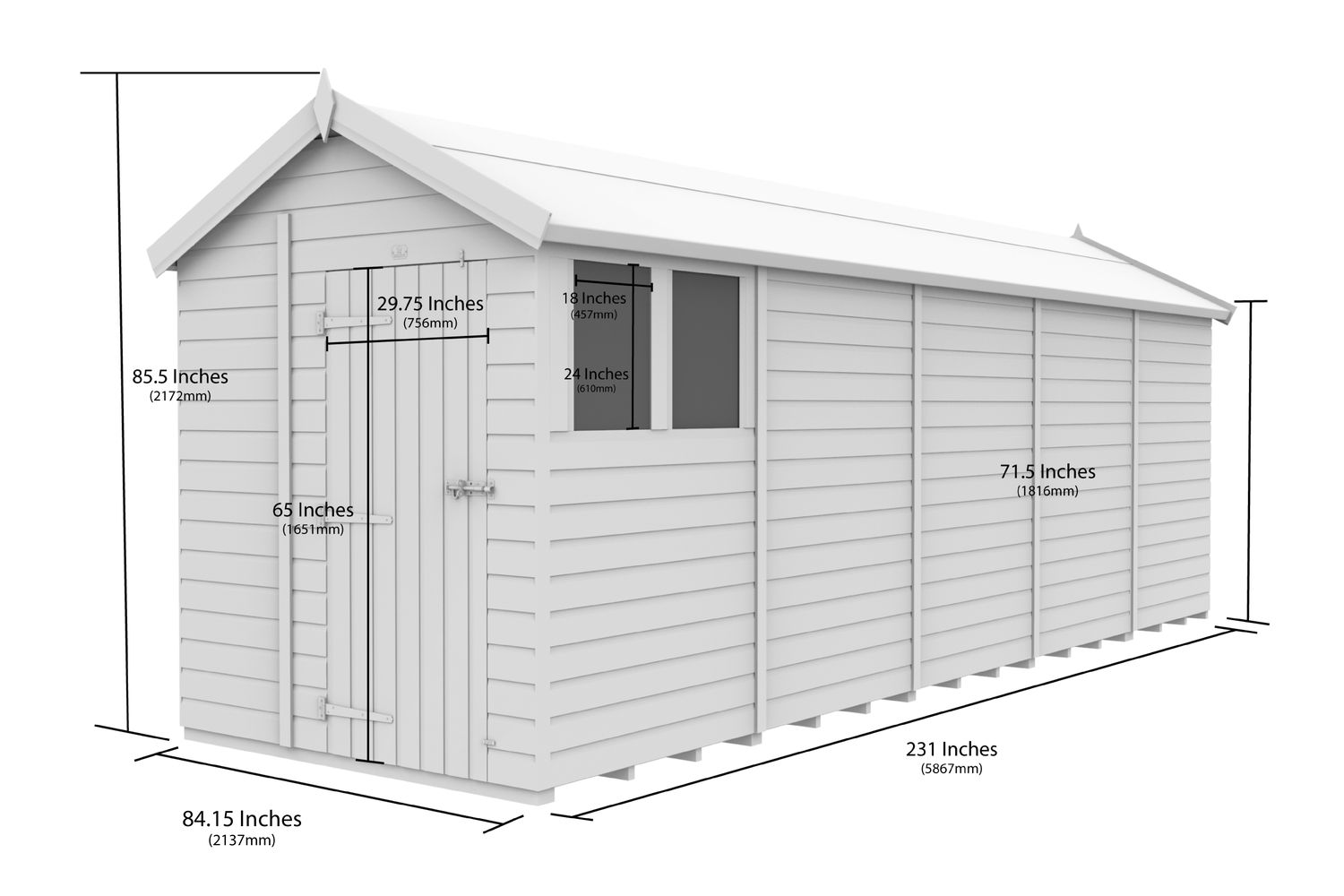 - Spacious 7 x 20 ft apex roof design for maximum headroom and storage capacity