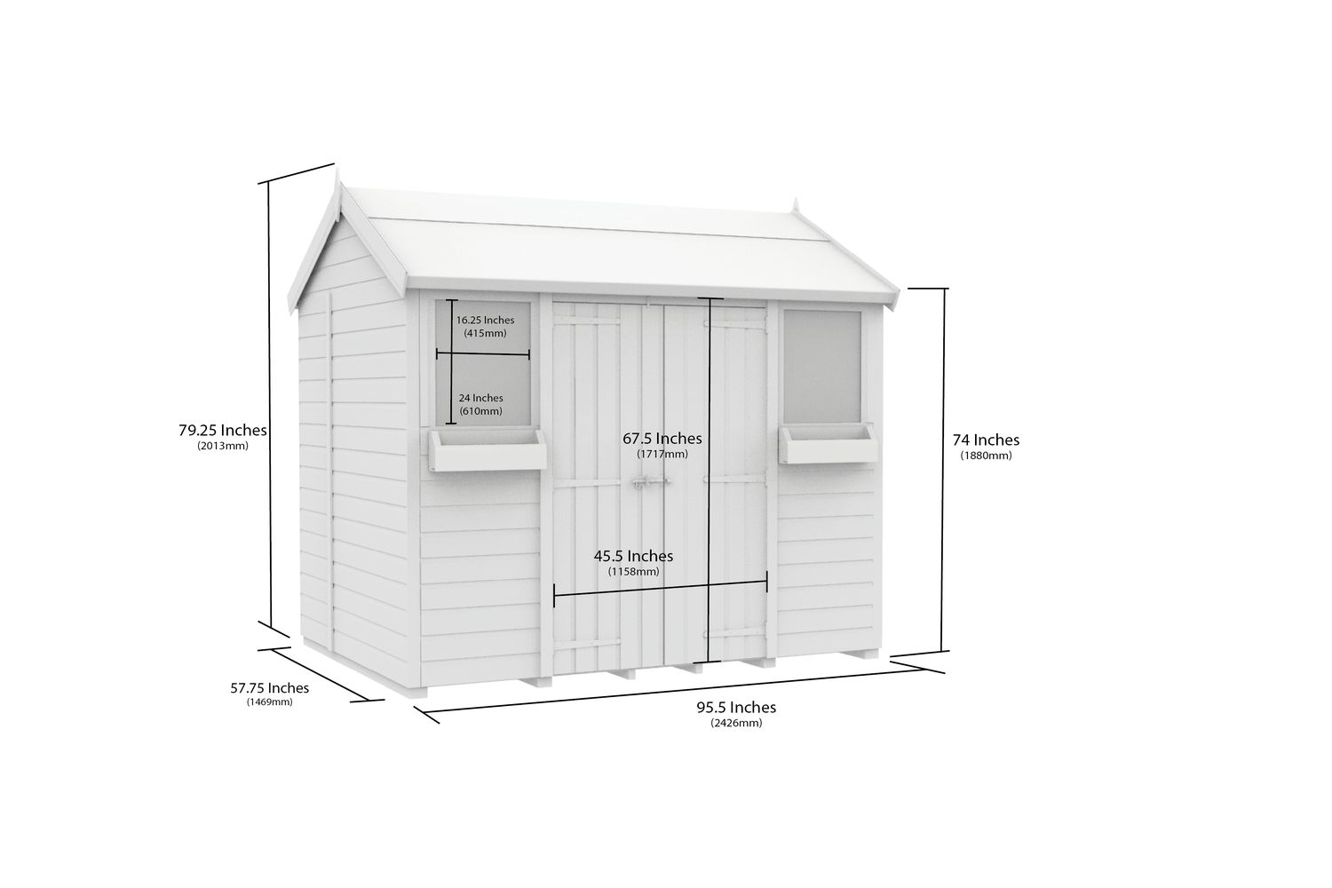 - 8ft x 5ft apex roof design for maximum headroom and storage