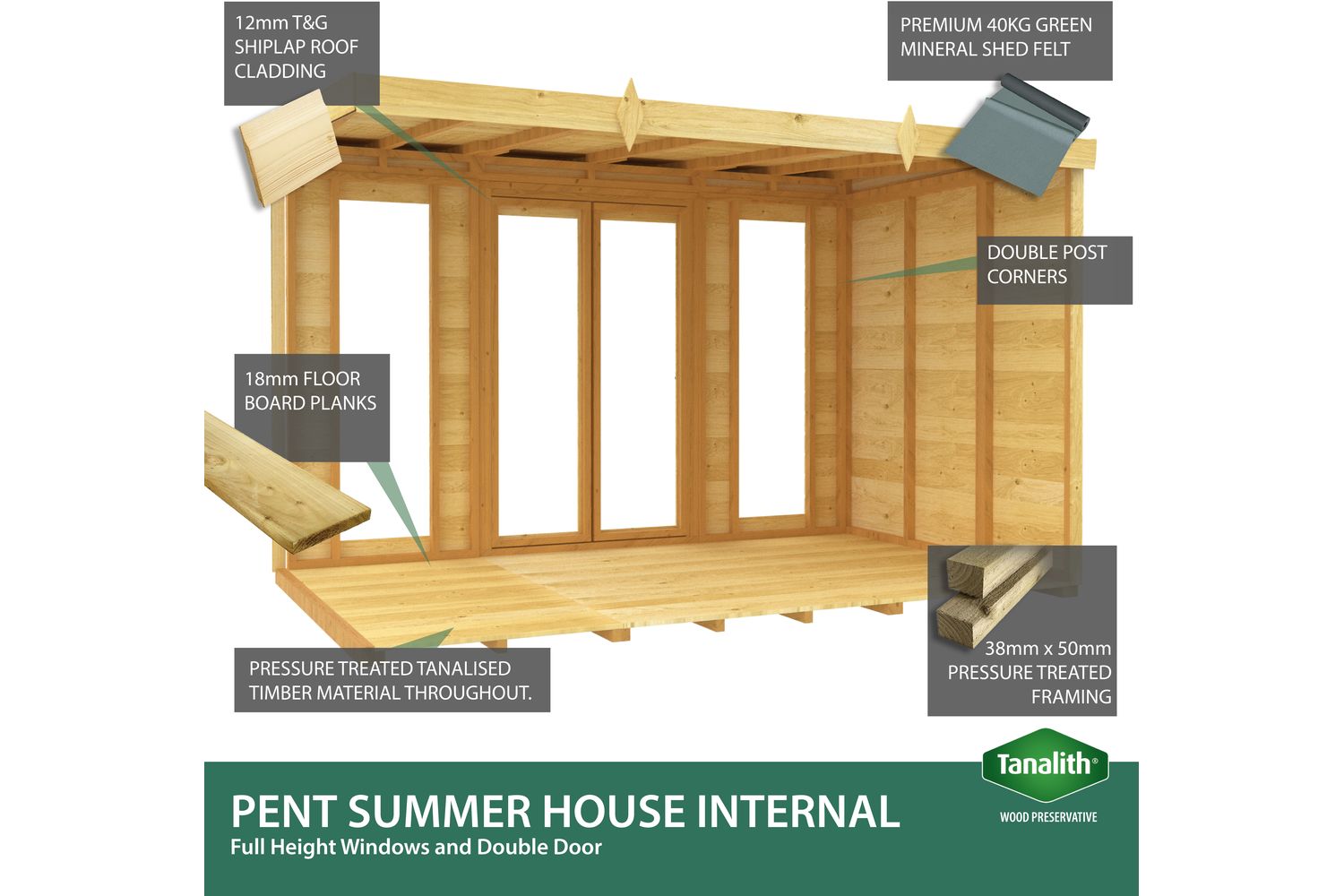 8 X 5 Pent Summer House | Full Height Window | Tanalised Timber