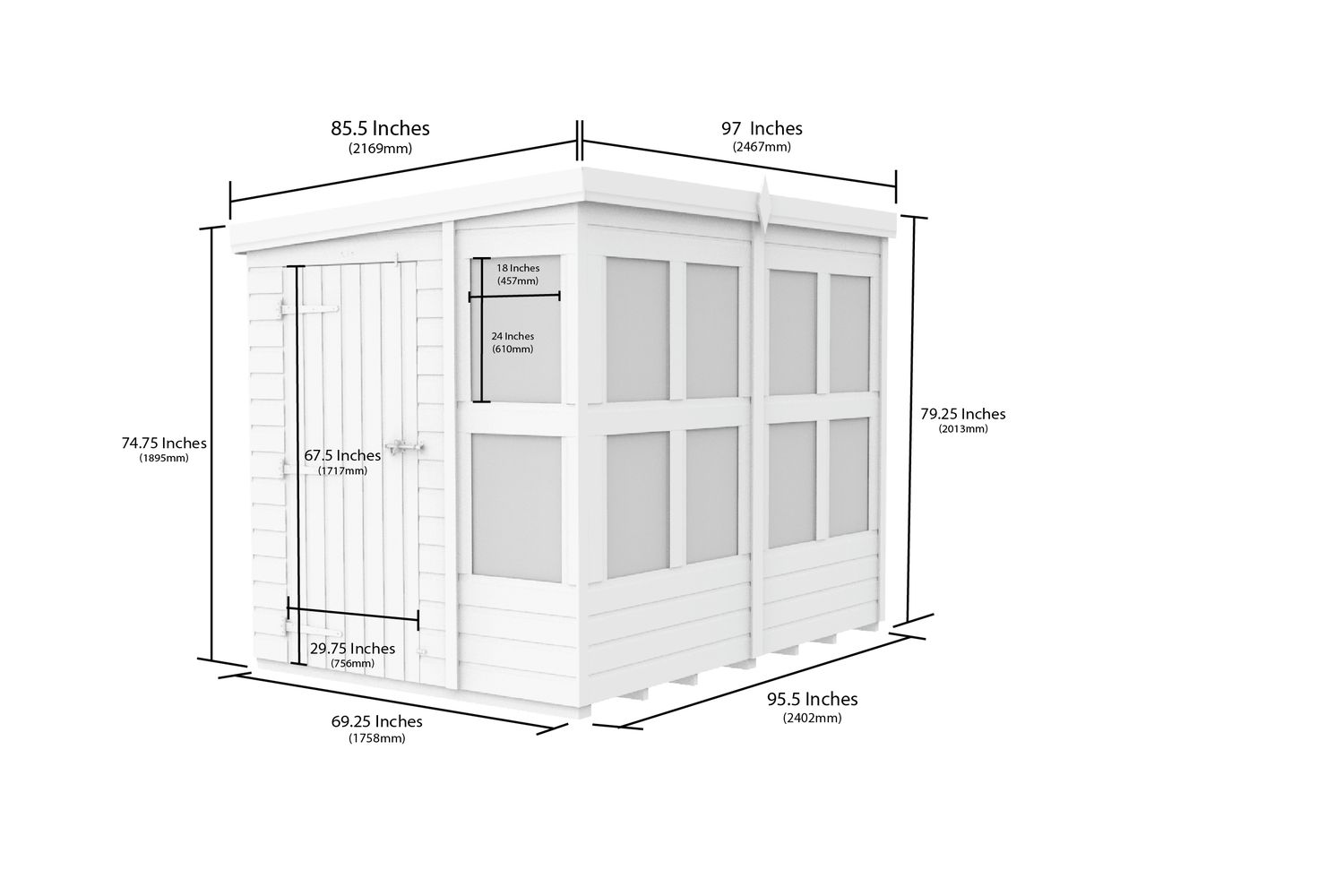 - Roof: Single sloping pent design