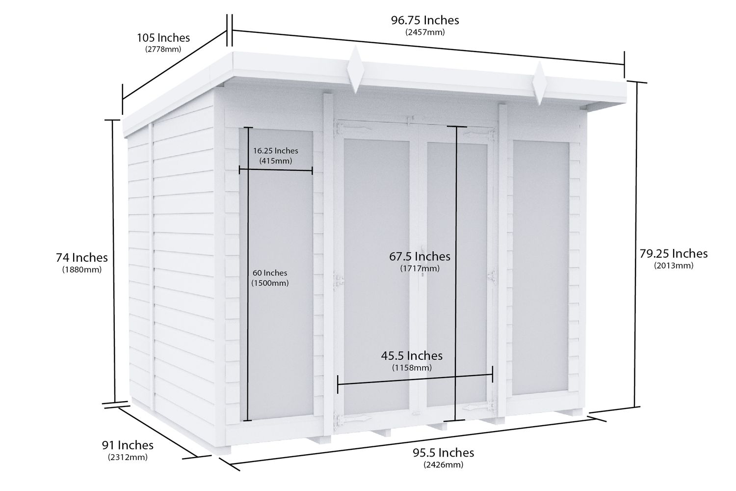 8 X 8 Pent Summer House | Full Height Window | Timber | 8ft x 8ft