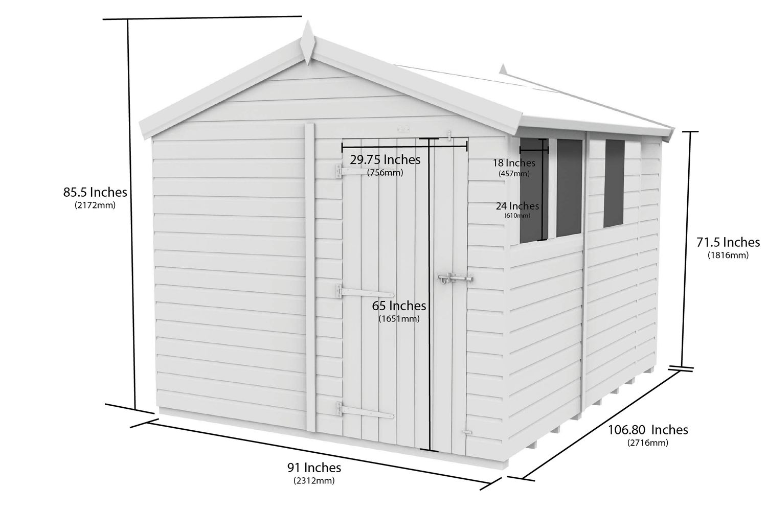 - 8ft x 9ft apex roof design for maximum headroom and storage