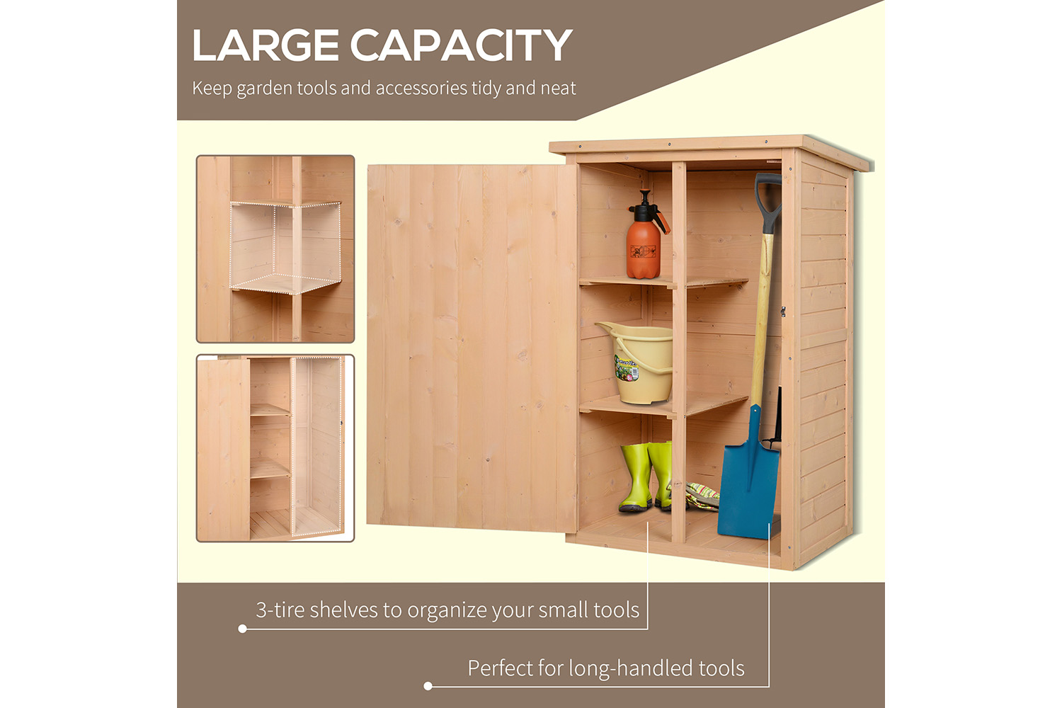 Outsunny Fir Wood Garden Storage Shed with Shelves | Natural