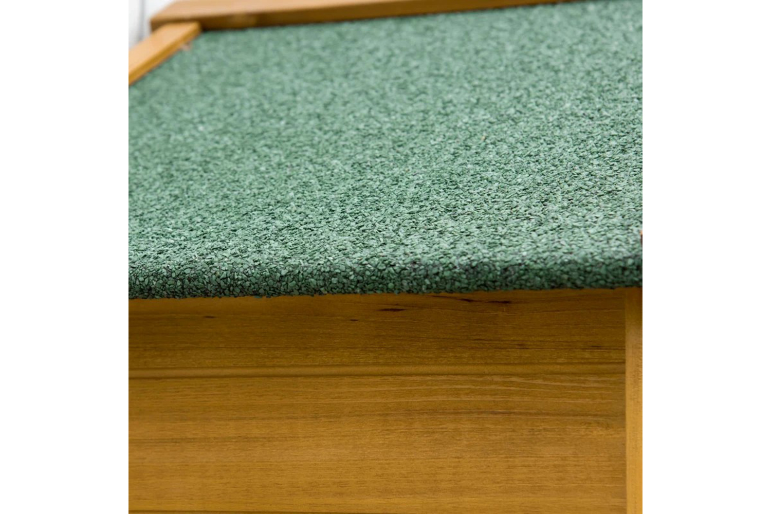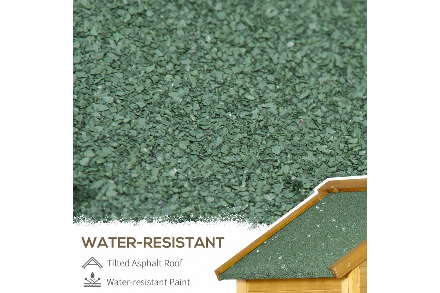 - Sloped roof with asphalt covering to help keep inside dry