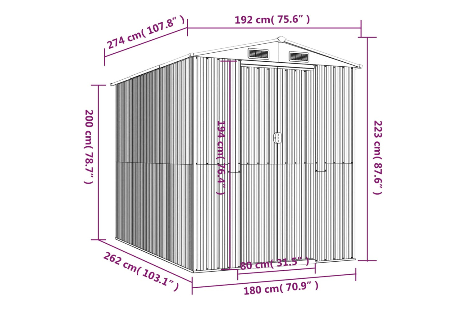 - Practical vent: The practical vent allows air to circulate inside the outdoor storage house, ensuring it doesn't produce any unpleasant odours.