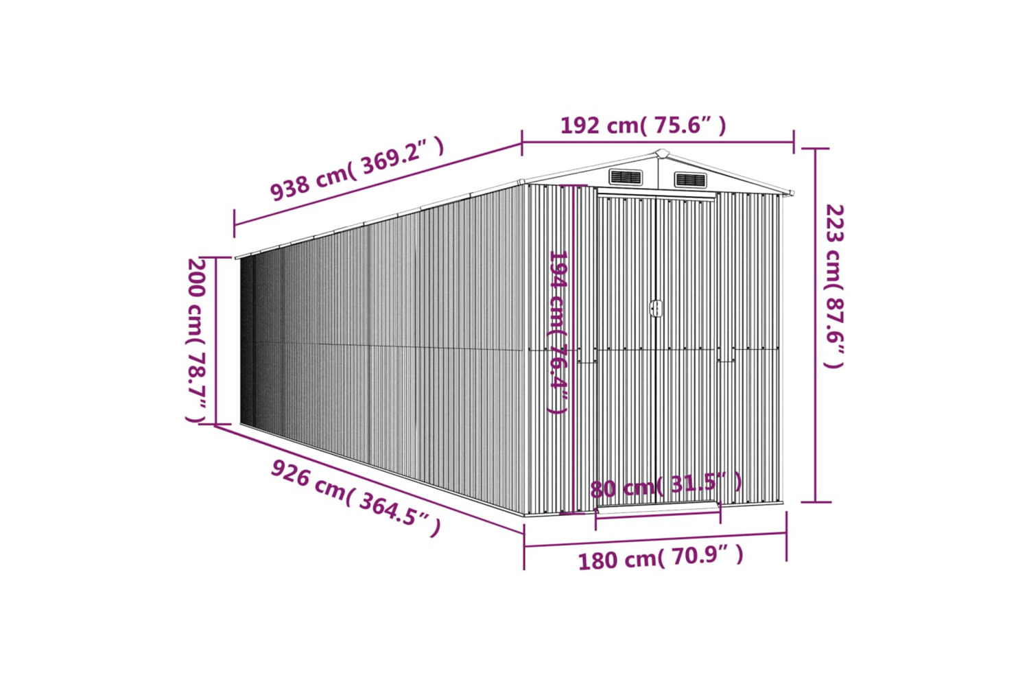 - Overall dimensions: 192 x 938 x 223 cm (L x W x H)