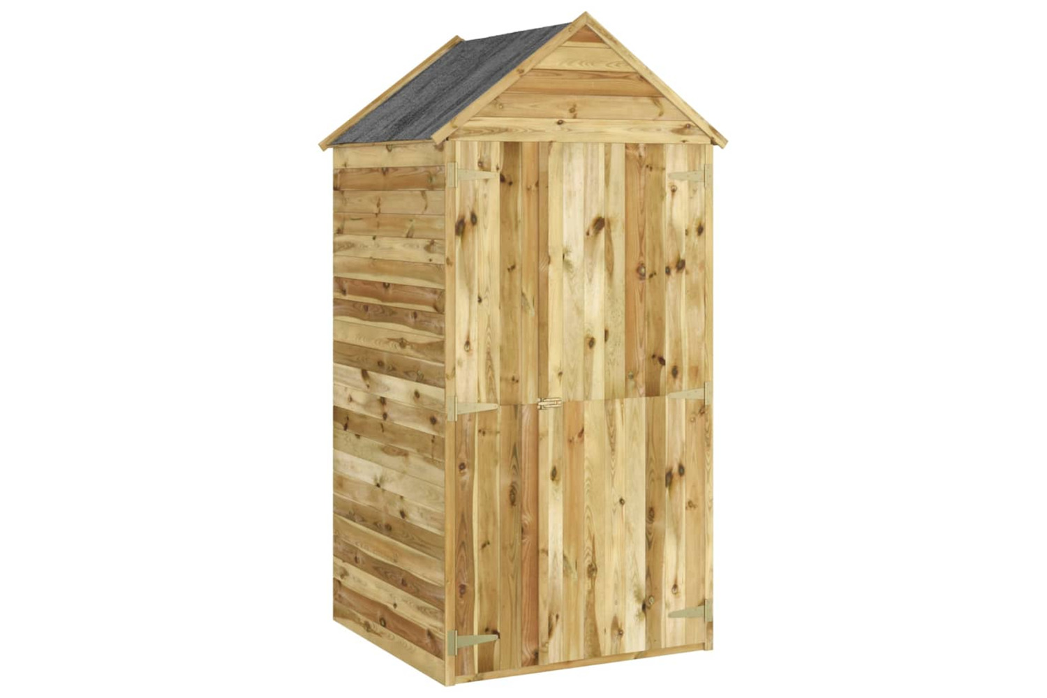 Built with quality impregnated solid pinewood, this shed is exceedingly durable and weather resistant. Its roof is covered with asphalt felt, which protects the shed against moisture. The shed includes 4 large compartments so that you can store your watering can, rakes, shovels or other garden tools, as well as other items and keep them neat and organised.