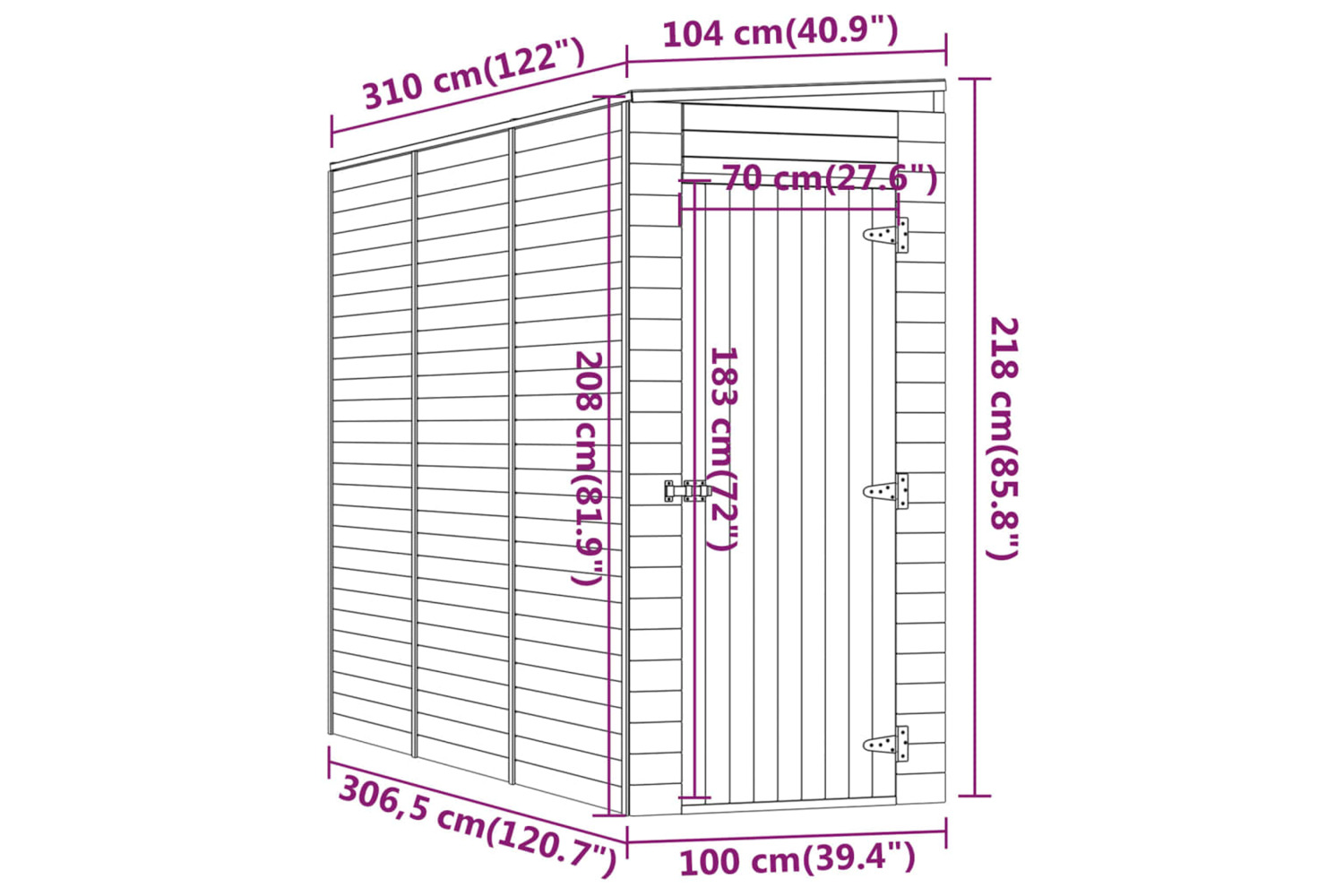 vidaXL 318202 Garden Storage Shed 100x310x218cm Impregnated Pinewood