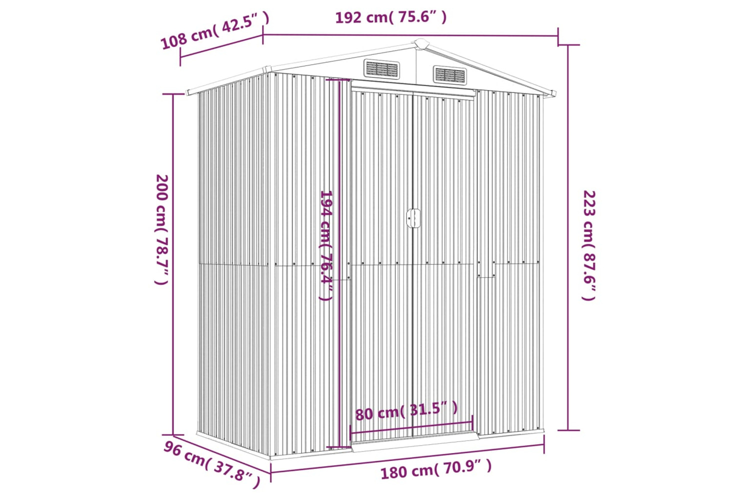 - Overall dimensions: 192 x 108 x 223 cm (L x W x H)