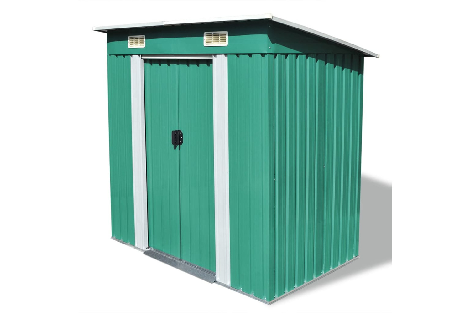 This storage shed has 2 vents in the front, ensuring excellent ventilation. The double sliding doors in the front allow easy entry and exit. The galvanised steel construction, along with a zinc-coated finish, makes it durable and strong, so it won't corrode or be affected by extreme weather.