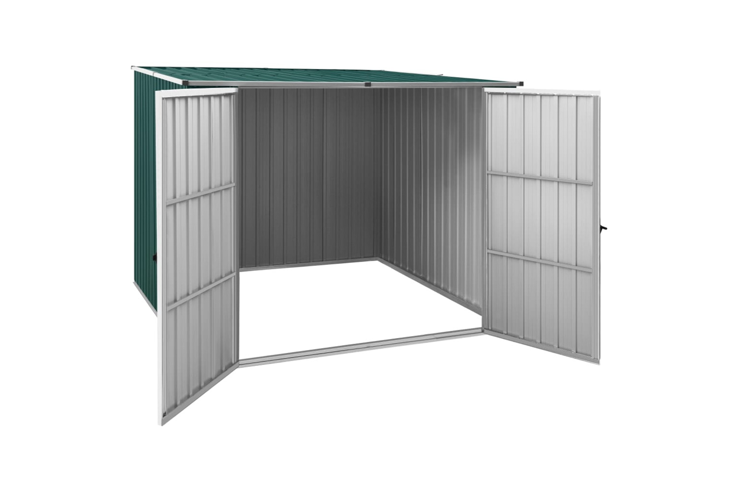 This outdoor storage shed made of galvanised steel, requires minimal maintenance and is very durable. The double opening doors in the front allow easy entry and exit. Additionally, rainwater automatically drains from the roof with its sloping design.