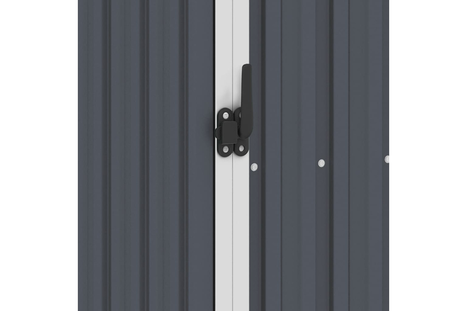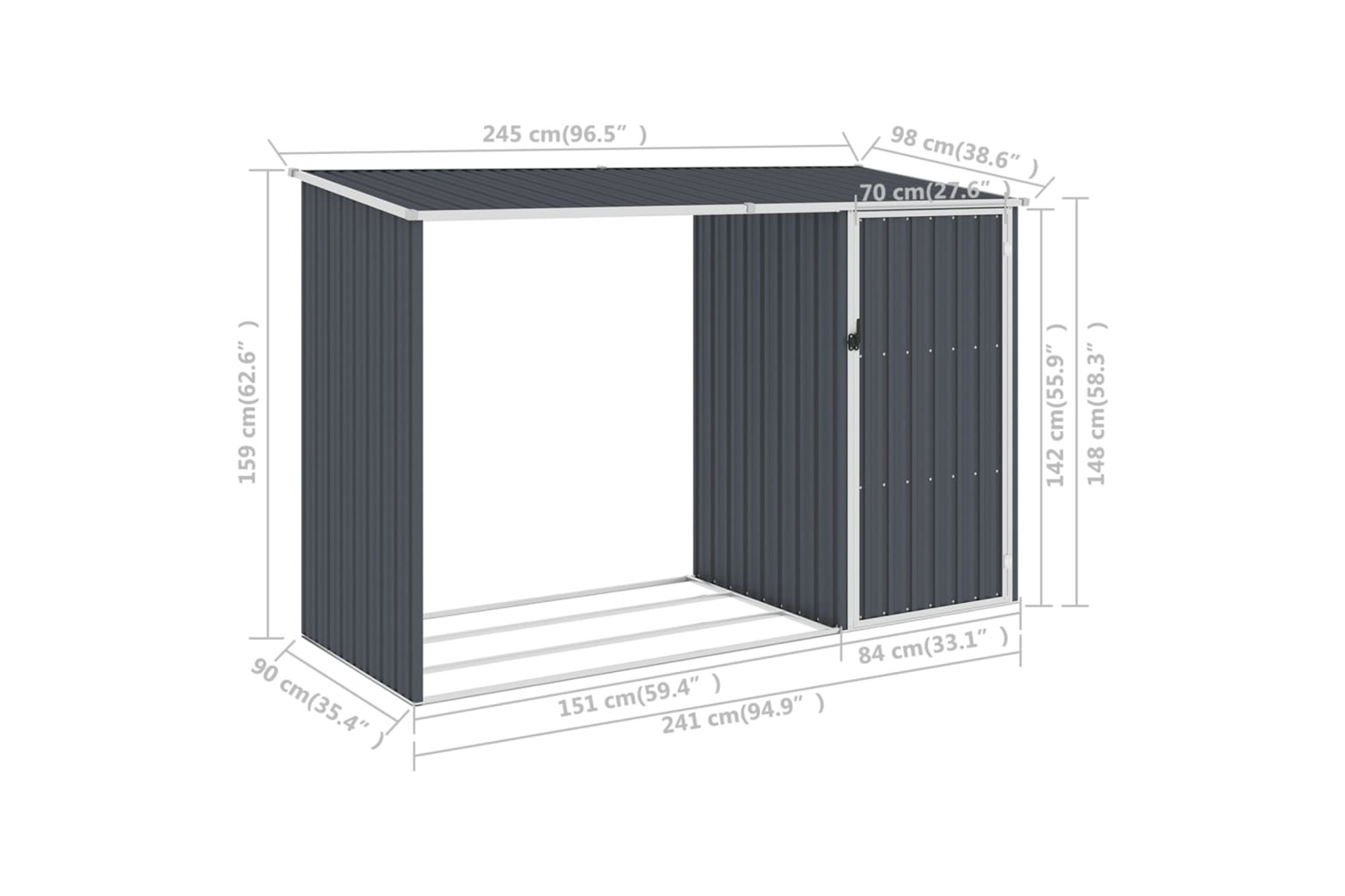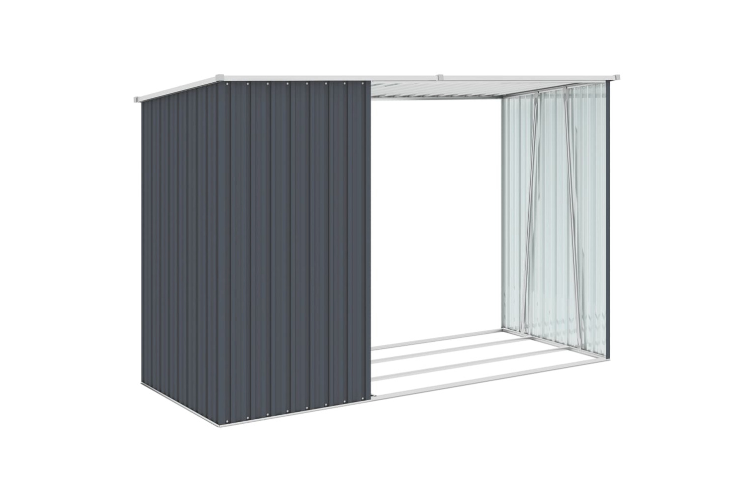 This garden shed, consisting of a log storage rack and a large shed, provides ample space for organising your outdoor tools. As it is made of galvanised steel, the storage shed requires minimal maintenance and is very durable. Rainwater automatically drains from the roof thanks to its sloping design.