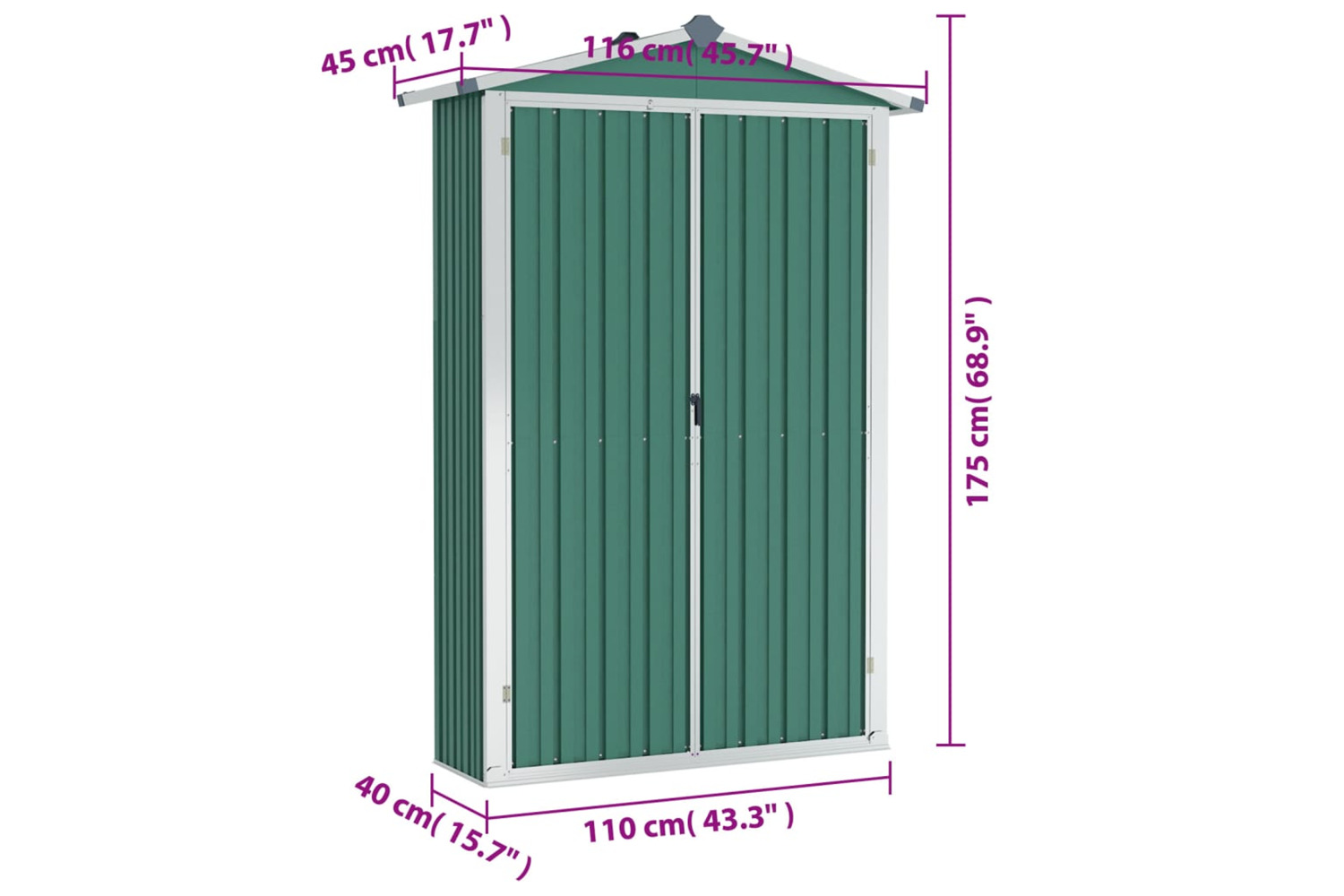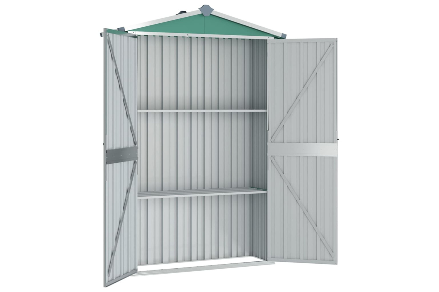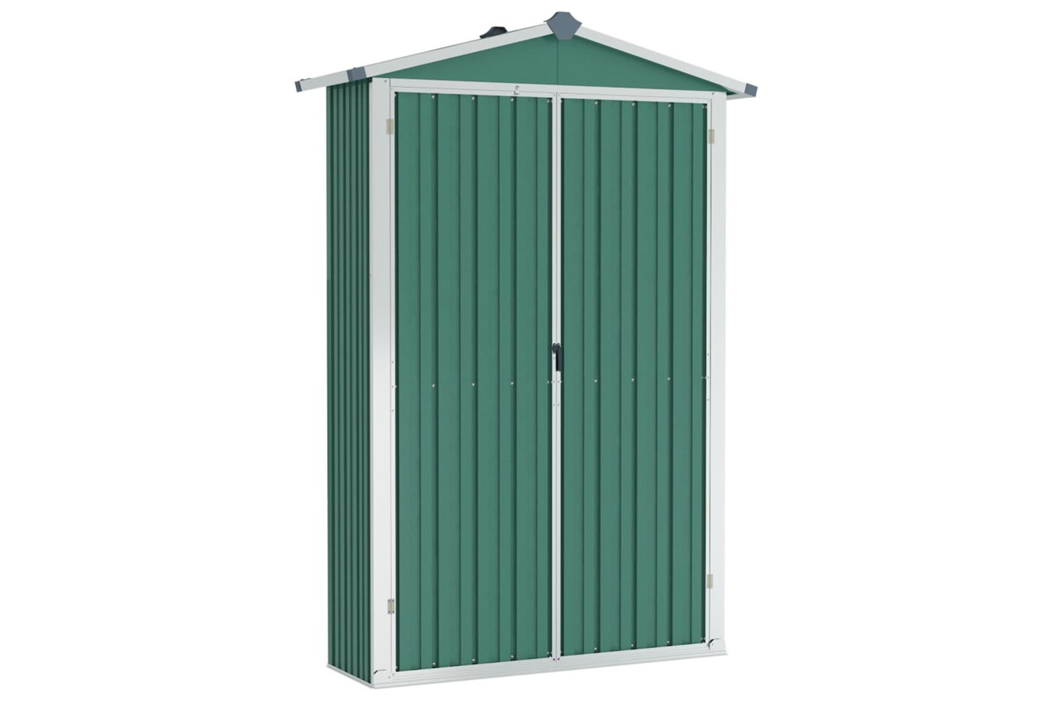 This storage house is equipped with vents, providing ventilation to reduce the accumulation of moisture and odour in the house. With shelves, it offers ample storage space to keep your essential items organised. Additionally, made of galvanised steel, this outdoor storage shed requires minimal maintenance and is very durable. The double opening doors in the front allow easy entry and exit. Rainwater automatically drains from the roof with its sloping design.