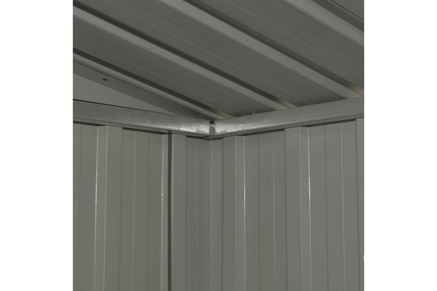 This storage shed has 2 vents in the front, ensuring excellent ventilation. The double sliding doors in the front allow easy entry and exit. The galvanised steel construction, along with a zinc-coated finish, makes it durable and strong, so it won't corrode or be affected by extreme weather.