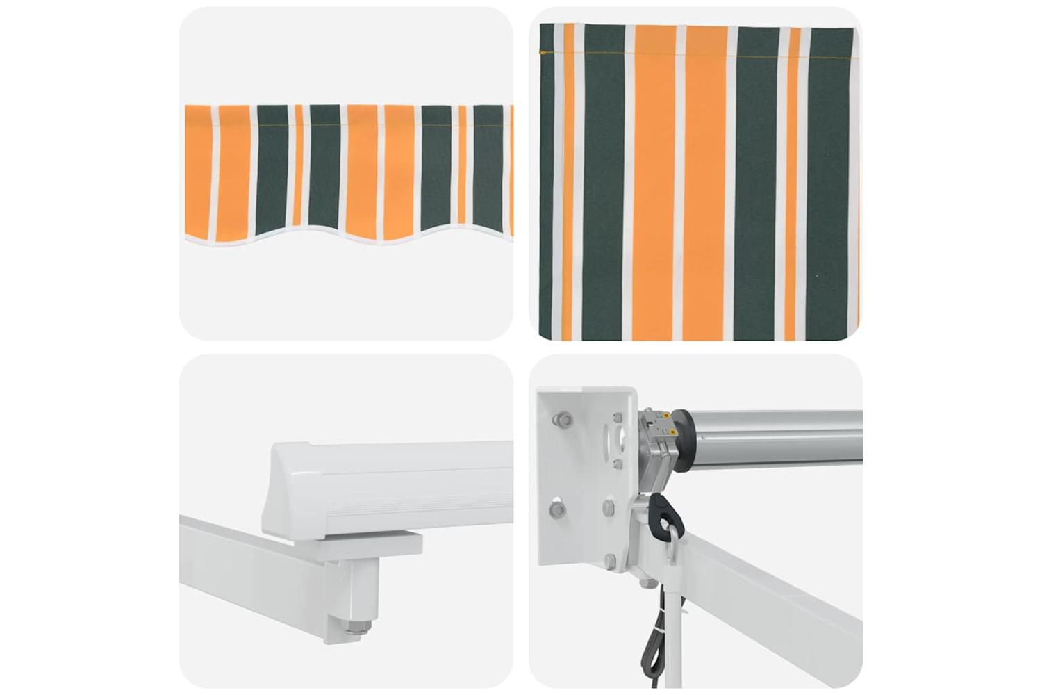 Polyester and Metal Construction This awning's a tough cookie, made from quality polyester and strong metal, ensuring it holds up well outside. The fabric's flexible and can handle the weather, while the metal gives it the grit it needs to stand tall. Retractable Functionality It folds in and out automatically, letting you control how much shade you want based on where the sun is. Super handy and elegant! UV-Resistant Materials The materials are built to take on UV rays, protecting against sun damage while keeping their colour and strength. No matter how bright it gets outside, your awning's got your back. Modern Style With clean lines and a fresh striped design, it fits right in with any outdoor decor, adding a splash of colour and flair. A stylish touch to spruce up your space! Easy Installation and Care Set up's a doddle—just grab a drill, screwdriver, and measuring tape, and you’re good to go. It’s easy to maintain too—no need for bleach, just keep it clean and it will stay looking smart.