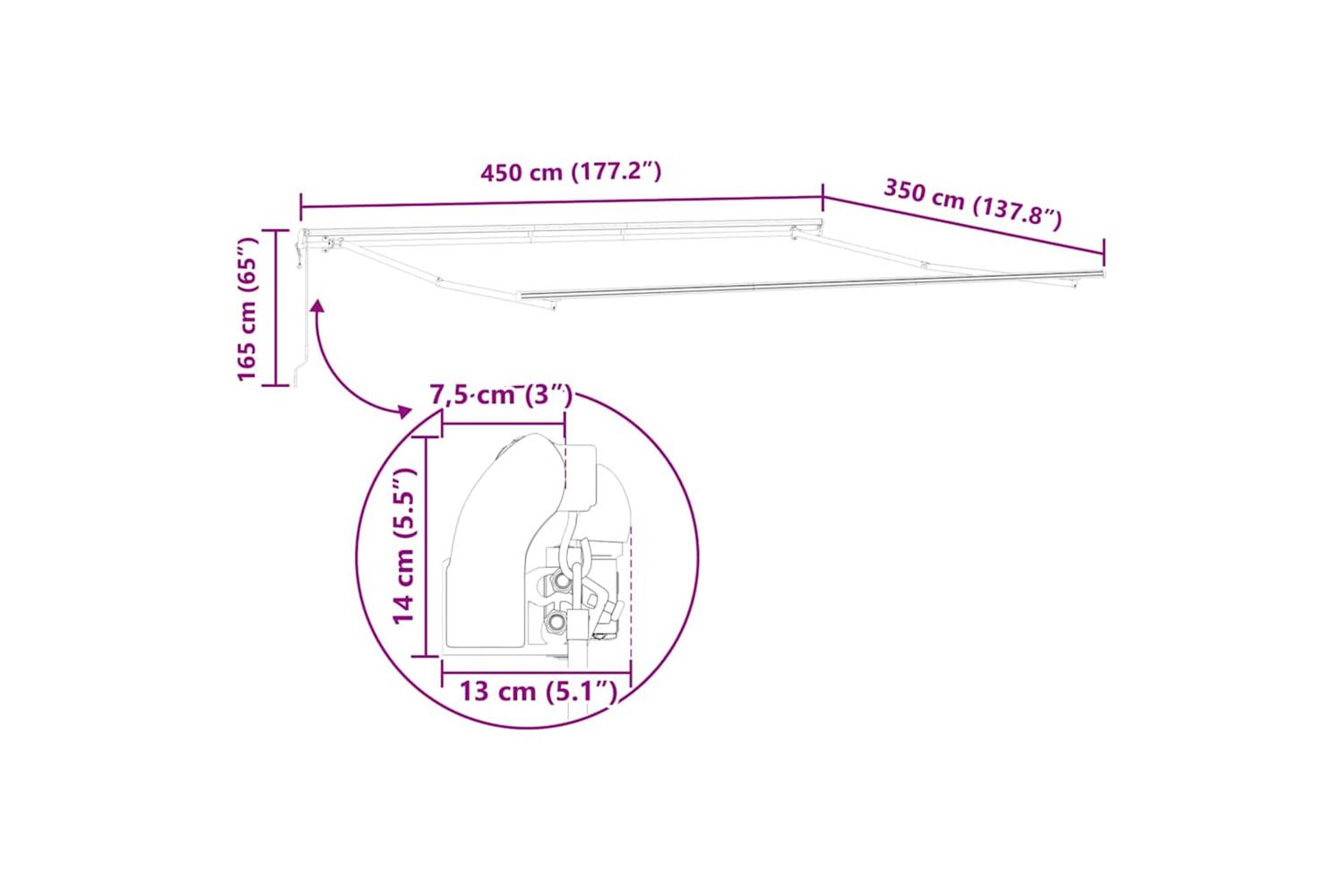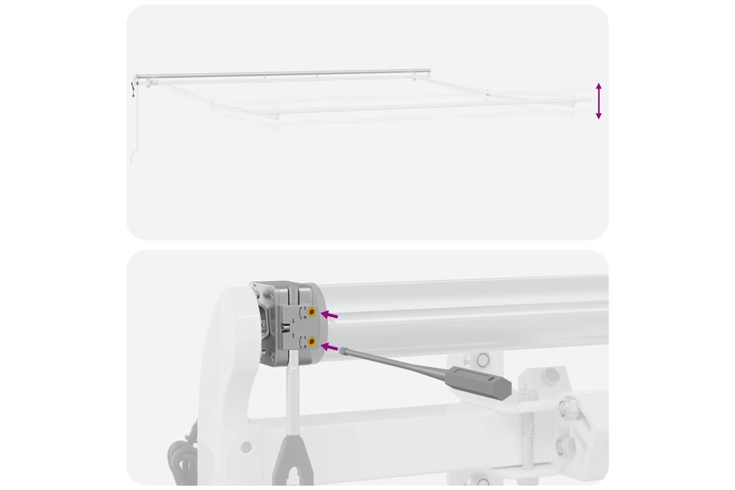 Metal Build: Made from top-quality metal, this awning is built to last, keeping you protected from the elements. The strong metal frame holds the fabric tight, ensuring efficient shade every time. Manual Adjustable Mechanism: With a user-friendly manual system, you can easily pull the awning in and out by hand, giving you control over lighting and vibe outdoors. UV Resistant Fabric: The UV-resistant materials keep you safe from harmful sun exposure all day long. You can enjoy sunny days without worrying about UV rays. Smooth Matte Texture: The matte finish boosts its modern elegance, keeping harsh reflections away while adding a sophisticated look to your outdoor decor. Care Instructions: To keep it looking good, regularly clean the awning with warm water and avoid direct sunlight when it's not being used. Skip harsh cleaners; just wipe it down with a damp cloth for a spotless look.