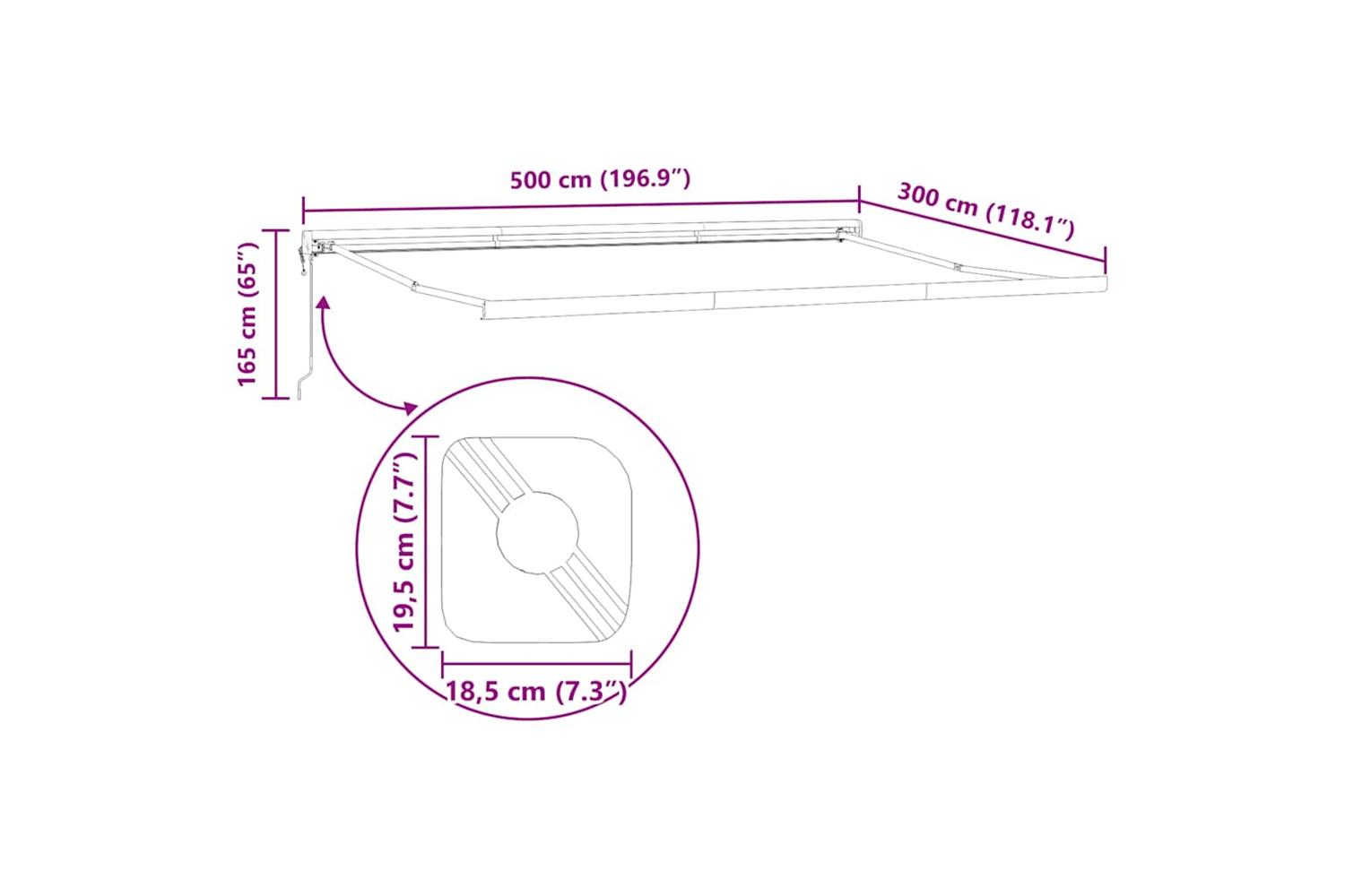 Material Details: Made from top-quality metal for durability and good performance, this awning combines strength with style. The metal frame can handle various weather, so it lasts a long time outside. Plus, its UV-resistant properties help stop sun damage, keeping it looking good for ages. Components Insight: With its retractable feature, this awning gives you flexibility outdoors. You can pull it out or retract it based on how much shade or sunlight you want. This adaptability is great for all sorts of occasions, from cosy garden get-togethers to larger outdoor meals. Function & Design: This awning stands out with its modern look, fitting perfectly into chic outdoor living areas. With clean lines and minimal fuss, it brings together sophistication and practicality, making it a smart choice for gardens and terraces. Suggested Uses: Great for outdoor terraces, gardens, or patios, this awning helps create comfy outdoor spots. It adapts to different activities and family needs, making it perfect for homes or businesses alike. Care Guidelines: Keep it looking good by giving it a wipe with a damp cloth and steering clear of harsh cleaners. Simple maintenance means it stays in tip-top shape for longer.