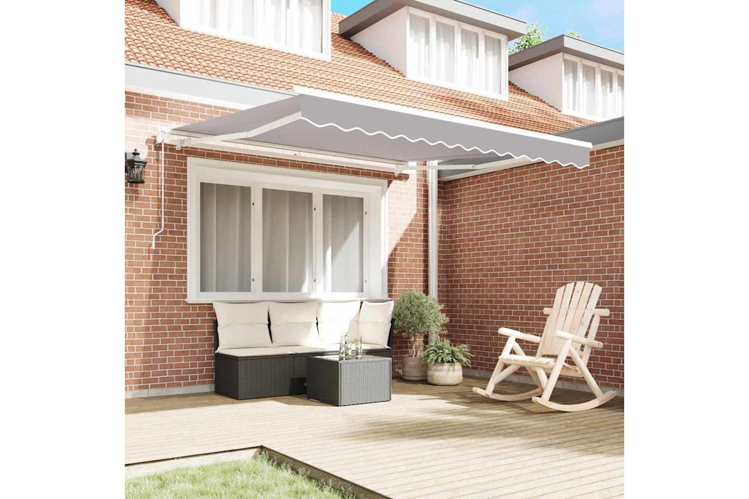 Materials: Made from strong fabric, this awning offers UV protection, water resistance, and fade resistance, ensuring it lasts and looks good over time. Backed by a sturdy steel frame, it’s built to handle outdoor conditions, making it perfect for all season use. Included Components: The motorised awning comes with a retractable awning and a remote control. This complete package makes setting it up a breeze, so you can enjoy comfort in any weather right away. Features / Function / Design: Boasting UV resistance and water-repellent features, the awning provides top-notch protection, shielding you and your furniture. Its retractable design lets you adjust the shade perfectly, while its contemporary style complements various outdoor designs. Recommended Uses: Great for patios, balconies, and gardens, the awning offers flexible shading options. It's adaptable to different environments, helps keep things cool, and protects surfaces from sun damage, creating welcoming and comfy spaces. Care & Maintenance: To keep it looking sharp, just give it a quick wipe down with a dry cloth to remove dust and dirt. When the weather gets rough, it’s best to retract the awning to extend its life and keep it functional, ensuring it’s ready to go all year round.