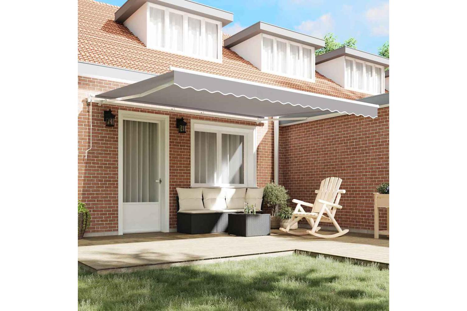 Materials: Made from strong fabric, this awning offers UV protection, water resistance, and fade resistance, ensuring it lasts and looks good over time. Backed by a sturdy steel frame, it’s built to handle outdoor conditions, making it perfect for all season use. Included Components: The motorised awning comes with a retractable awning and a remote control. This complete package makes setting it up a breeze, so you can enjoy comfort in any weather right away. Features / Function / Design: Boasting UV resistance and water-repellent features, the awning provides top-notch protection, shielding you and your furniture. Its retractable design lets you adjust the shade perfectly, while its contemporary style complements various outdoor designs. Recommended Uses: Great for patios, balconies, and gardens, the awning offers flexible shading options. It's adaptable to different environments, helps keep things cool, and protects surfaces from sun damage, creating welcoming and comfy spaces. Care & Maintenance: To keep it looking sharp, just give it a quick wipe down with a dry cloth to remove dust and dirt. When the weather gets rough, it’s best to retract the awning to extend its life and keep it functional, ensuring it’s ready to go all year round.