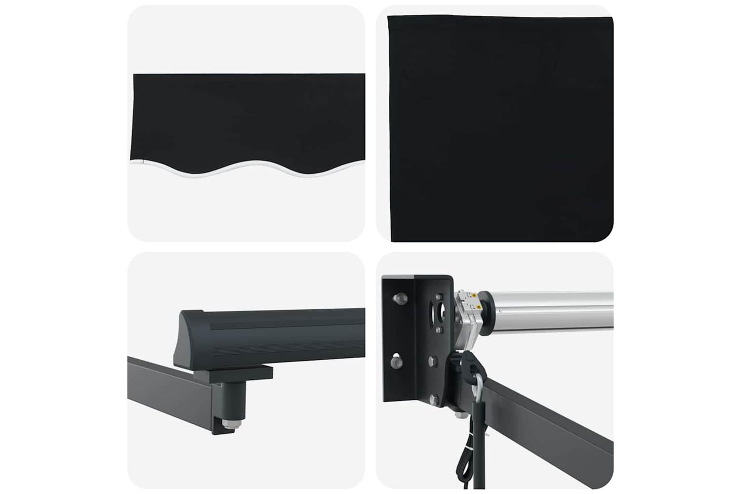 Polyester and Metal Build This awning's made from a tough mix of polyester fabric and metal parts. The polyester gives great UV protection, keeping you safe from harmful rays. The metal frame adds durability, so it can handle various weather conditions. Remote-Controlled Adjustment Thanks to its nifty remote control, you can reposition the awning from a distance. Whether it's a sudden downpour or blazing sunshine, you can easily extend or retract it, adjusting the shade without any hassle. Retractable Functionality Mixing style with practicality, the awning's retractable feature lets you take charge of your shade. Whether you want full coverage on the patio or prefer to bask in the sun, it adapts effortlessly, keeping comfort in mind. UV-Resistant Materials Made with UV-resistant materials, this awning holds up well under the sun without fading. This ensures your outdoor area looks fresh and stays protected from harmful UV rays, giving you peace of mind. Low Maintenance Even though it's a high-functioning outdoor piece, the awning needs minimal upkeep. Just a quick wipe keeps it looking sharp, standing up to the elements without losing its colour or getting damaged. This easy care means you can enjoy your outdoor time even more.