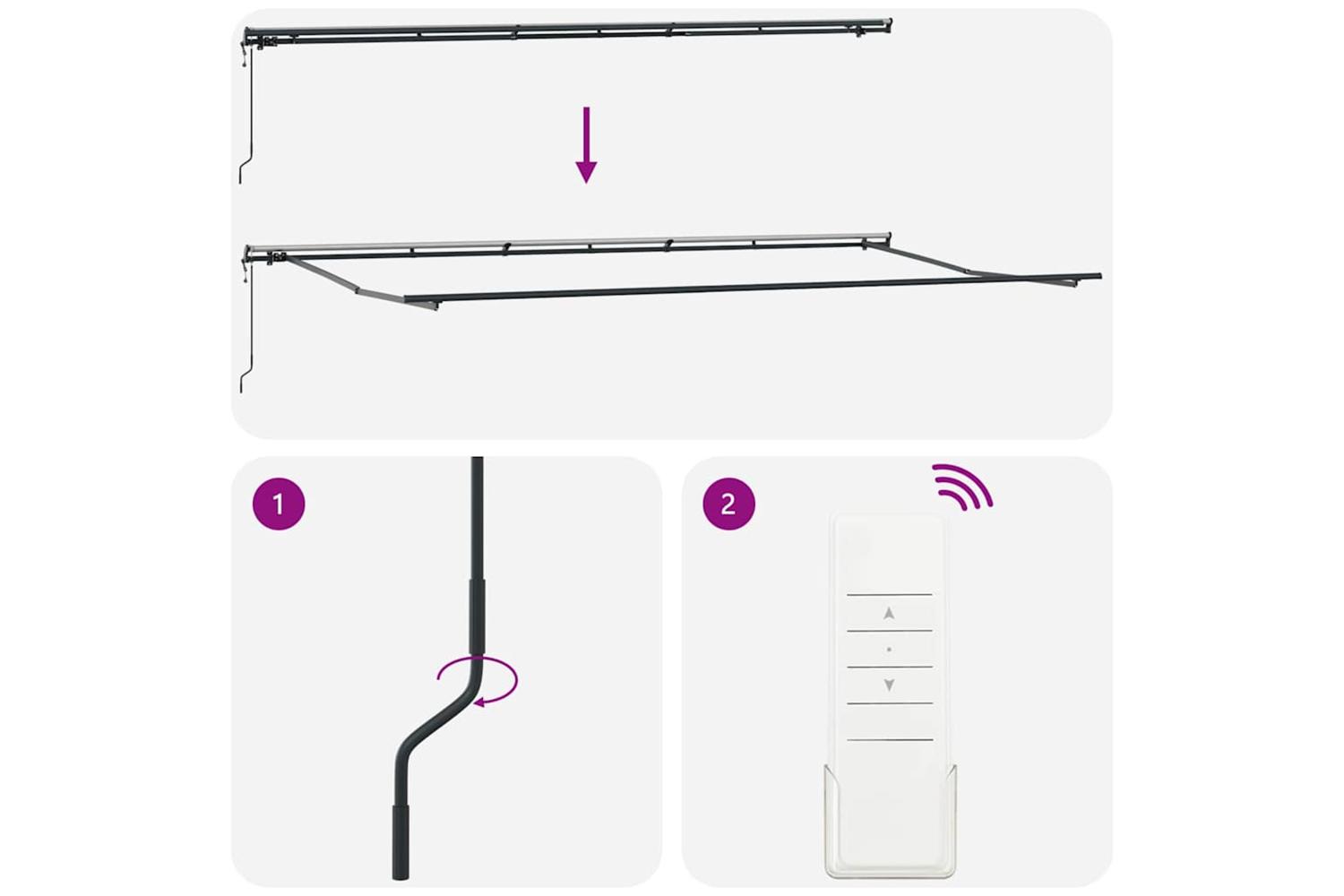 Material Strength: Crafted from a smooth fabric exterior and a sturdy aluminium frame, this awning is designed for lasting strength. The materials are resistant to water and UV rays, keeping it looking good and holding up in all weather. This setup makes it a great choice for outdoor shade. Included Essentials: The package comes with everything you need—the fabric and frame—making setup a breeze. The remote control means you can easily adjust it whenever you want, making daily use straightforward and hassle-free. Functional Adaptability: Use the retractable design to manage how much shade you want, adapting to the weather or your preferred light. This feature maximises comfort and expands how useful your outdoor spaces can be, perfect for patios or decks. Multiple Uses: Ideal for home patios, outdoor dining spaces, or balconies, this awning is super versatile. It fits various activities and settings, giving homeowners or business owners loads of options. Maintenance Ease: Keeping the awning looking great is easy—just brush off dirt when it's dry. Use a waterproof spray before heavy rain to keep it strong and stylish, so looking after it is a walk in the park.