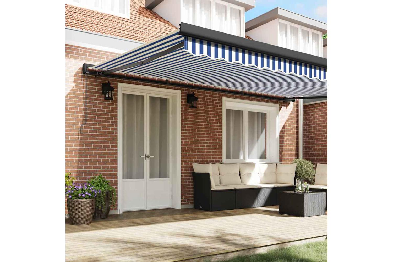 Smooth Fabric Surface: The fabric is smooth to the touch and looks nice, without any annoying friction. It’s tough and feels good, bringing a bit of elegance to your terrace or garden. Plus, it won't wear out quickly in the sun, so it stays looking great all summer long. Efficient Retractable Mechanism: With its retractable design, you can easily adjust the awning to the perfect length. It’s flexible for changing weather, giving you shade when you need it and sunshine when you want it. Versatile Outdoor Application: This awning is made for outdoors and can handle different summer weather, making it ideal for gardens and terraces. It’s a smart choice for anyone wanting style and practicality together. Modern Fabric and Metal Build: Crafted from quality fabric and solid metal, this awning has a strikingly modern look. Its robust design means it performs well over time, supported by strong metal structures. Care and Maintenance Tips: To keep your awning in tip-top shape, cover it when it’s not in use and during bad weather. It’s easy to care for, so cleaning is hassle-free and keeps it looking nice for longer.