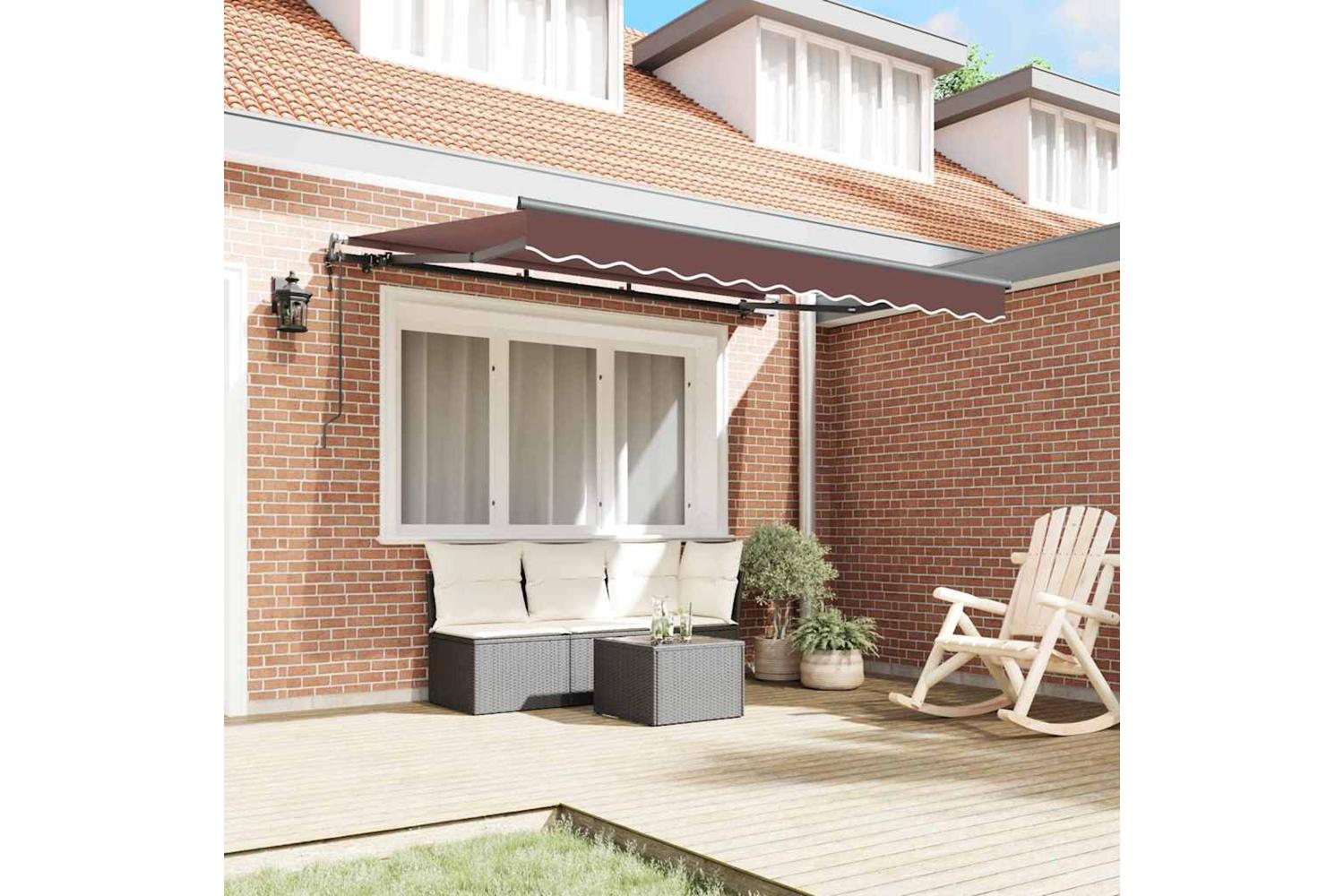 Retractable Design Adjust the shade easily whenever needed, ensuring you stay comfy and protected from the sun. This design is all about versatility, perfect for any spot in your outdoor area. Weather-Resistant Materials Built tough with an aluminium frame and polyester fabric, this awning handles all sorts of weather. Its water-repellent polyester keeps you dry and comfy, even if it rains a bit. Modern Appearance Its clean lines and minimal detailing give it a stylish modern look that fits nicely with any outdoor decor. It not only looks good but also blends in seamlessly with whatever you've got going on in your terrace or garden. Adjustable Shade Solution It’s perfect for getting the right amount of shade just how you want it. Whether you’re having a quiet afternoon or throwing a party, you can easily adjust the coverage for a pleasant vibe all day. Easy Care To keep your awning in great condition, use a protective cover when it's not in use. This simple step helps it maintain its looks and function for a long time.