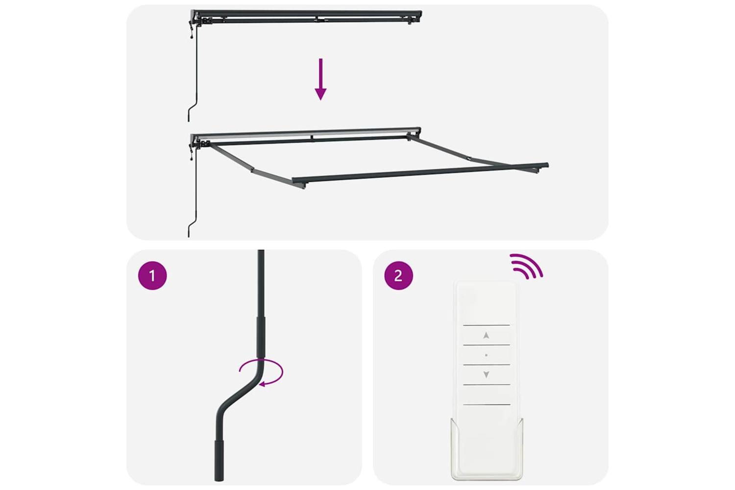 Quality Fabric: The awning is crafted from quality fabric that fends off UV rays, water, and fading. This keeps it looking sharp, even after lots of sun. The material feels great to touch, offering a luxe vibe but practical enough for the outdoors. Adjustable Angle: With a nifty 10-degree adjustable angle, this awning lets you set it just how you want for top-notch shade. It adapts with the sun's position for comfort all day long. Functional Design: The retractable parts combine style with practicality. Water-resistant materials keep you covered when the weather's a bit dodgy, giving you control over your outdoor area for a chill experience. Versatile Use: Made especially for open-air spots, this awning is just right for balconies and outdoor setups. Its flexibility makes it suitable for all kinds of scenarios, lifting spaces meant for relaxing, dining, or socialising. Easy Maintenance: A quick clean with cold water and tightening screws will keep it lasting longer. Steer clear of harsh chemicals to keep its texture and look, making care straightforward and keeping it nice over the seasons.