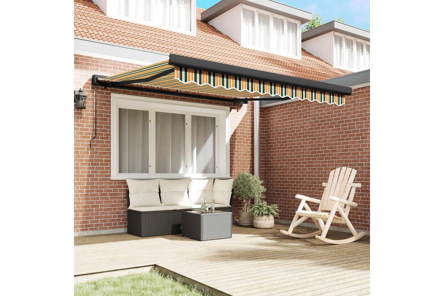 Smooth Fabric Surface: The fabric is smooth to the touch and looks nice, without any annoying friction. It’s tough and feels good, bringing a bit of elegance to your terrace or garden. Plus, it won't wear out quickly in the sun, so it stays looking great all summer long. Efficient Retractable Mechanism: With its retractable design, you can easily adjust the awning to the perfect length. It’s flexible for changing weather, giving you shade when you need it and sunshine when you want it. Versatile Outdoor Application: This awning is made for outdoors and can handle different summer weather, making it ideal for gardens and terraces. It’s a smart choice for anyone wanting style and practicality together. Modern Fabric and Metal Build: Crafted from quality fabric and solid metal, this awning has a strikingly modern look. Its robust design means it performs well over time, supported by strong metal structures. Care and Maintenance Tips: To keep your awning in tip-top shape, cover it when it’s not in use and during bad weather. It’s easy to care for, so cleaning is hassle-free and keeps it looking nice for longer.