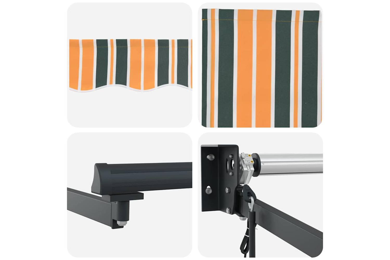 This Retractable Awning adds a modern touch and practical use to your outdoor spaces with its bright green and yellow stripes. It's perfect for balconies and gardens, as its tidy lines and simple design look great with contemporary styles. This awning is a must-have for enjoying your time outside during summer, offering adjustable shade and comfort whether you're firing up the barbecue or curling up with a book.